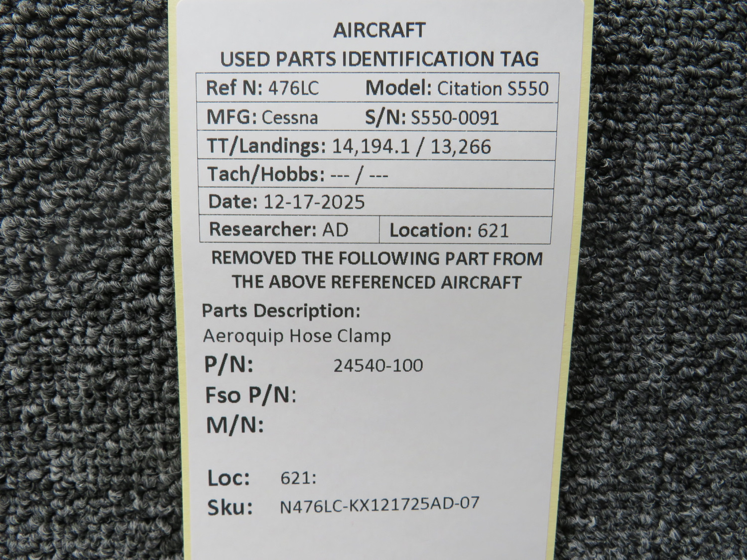 Unless specifically noted, most of our used airplane parts are sold in the condition they were removed, which means you should expect the usual signs of wear and tear.