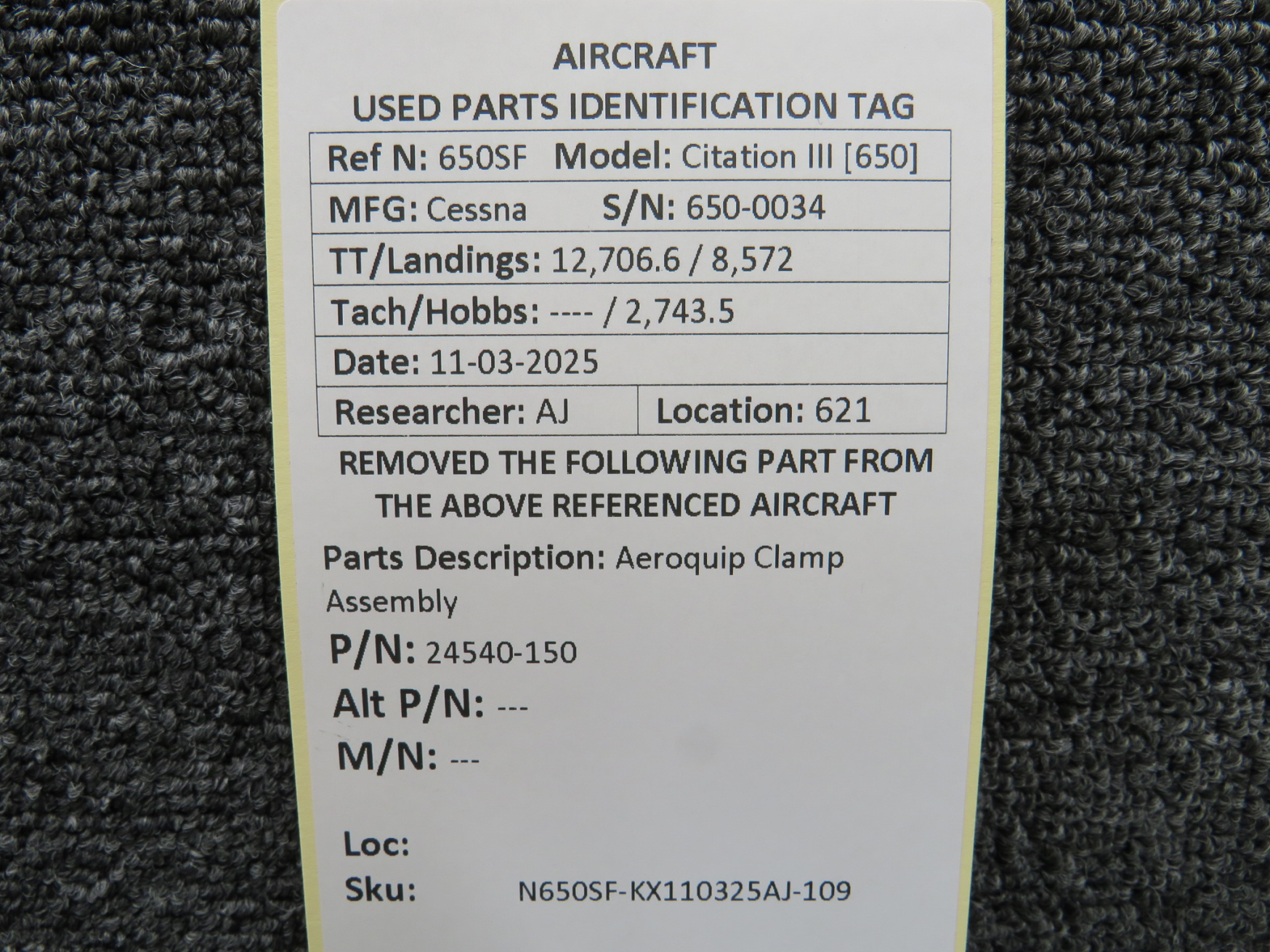 Unless specifically noted, most of our used airplane parts are sold in the condition they were removed, which means you should expect the usual signs of wear and tear.