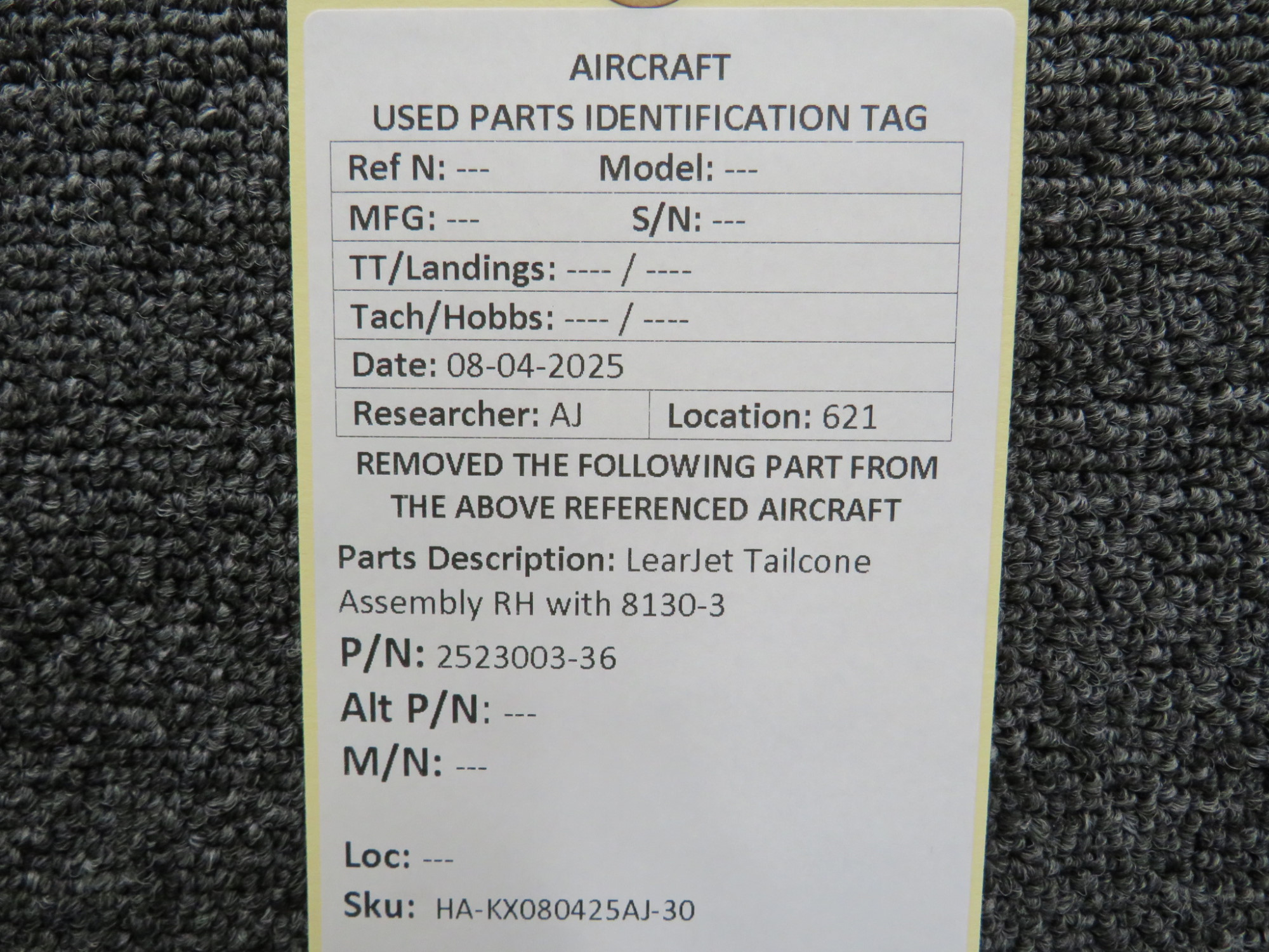 Unless specifically noted, most of our used airplane parts are sold in the condition they were removed, which means you should expect the usual signs of wear and tear.