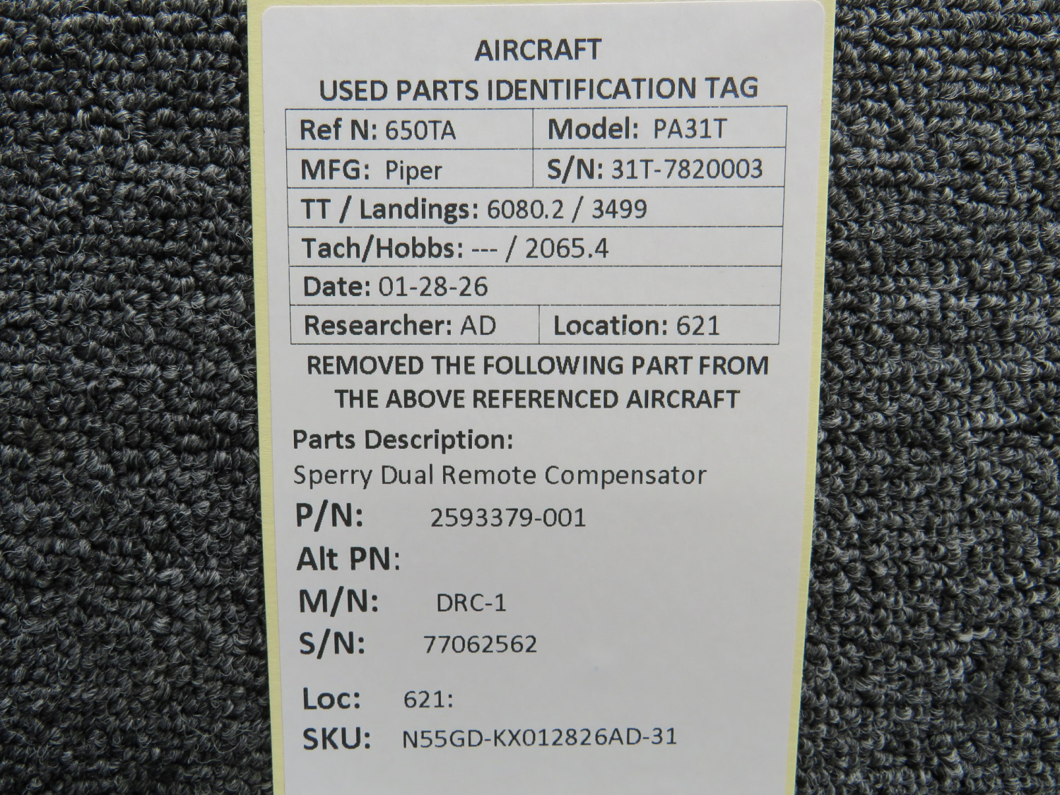 Unless specifically noted, most of our used airplane parts are sold in the condition they were removed, which means you should expect the usual signs of wear and tear.