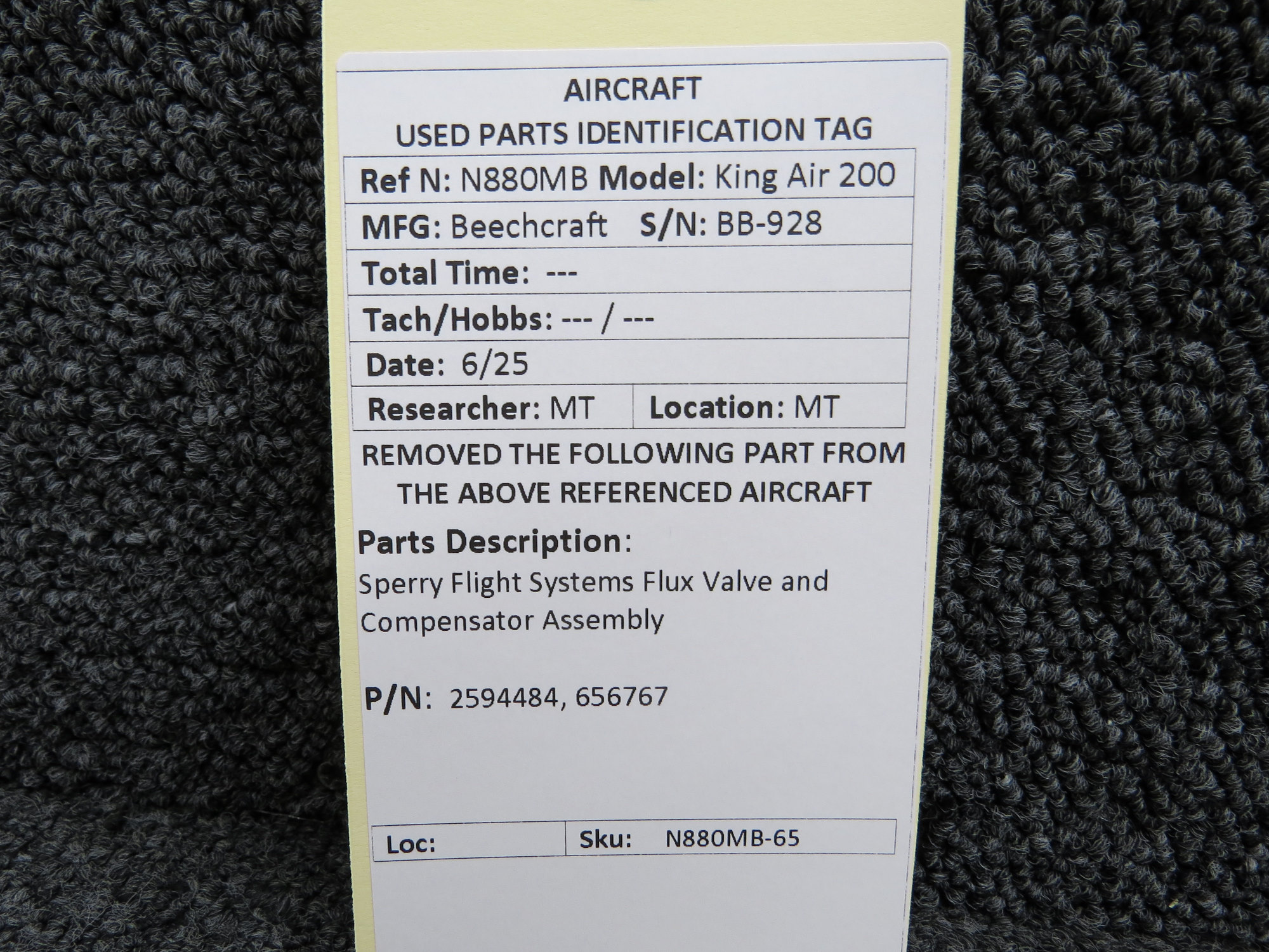 - Flux Valve Part Number: 2594484