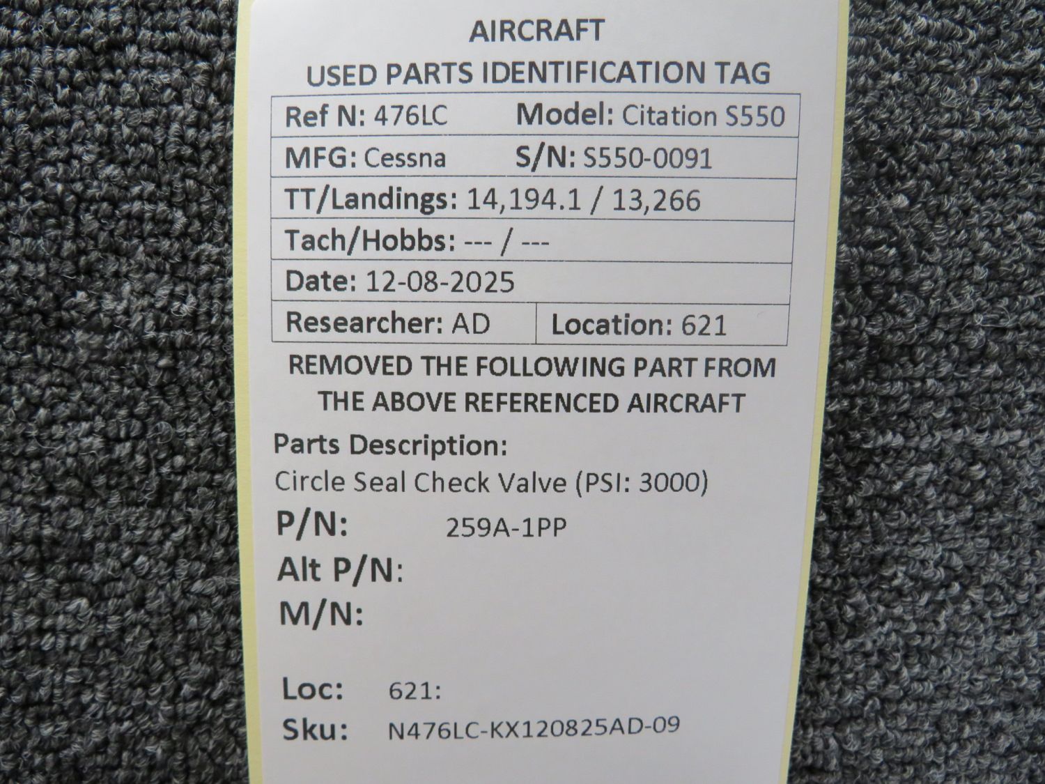 Unless specifically noted, most of our used airplane parts are sold in the condition they were removed, which means you should expect the usual signs of wear and tear.
