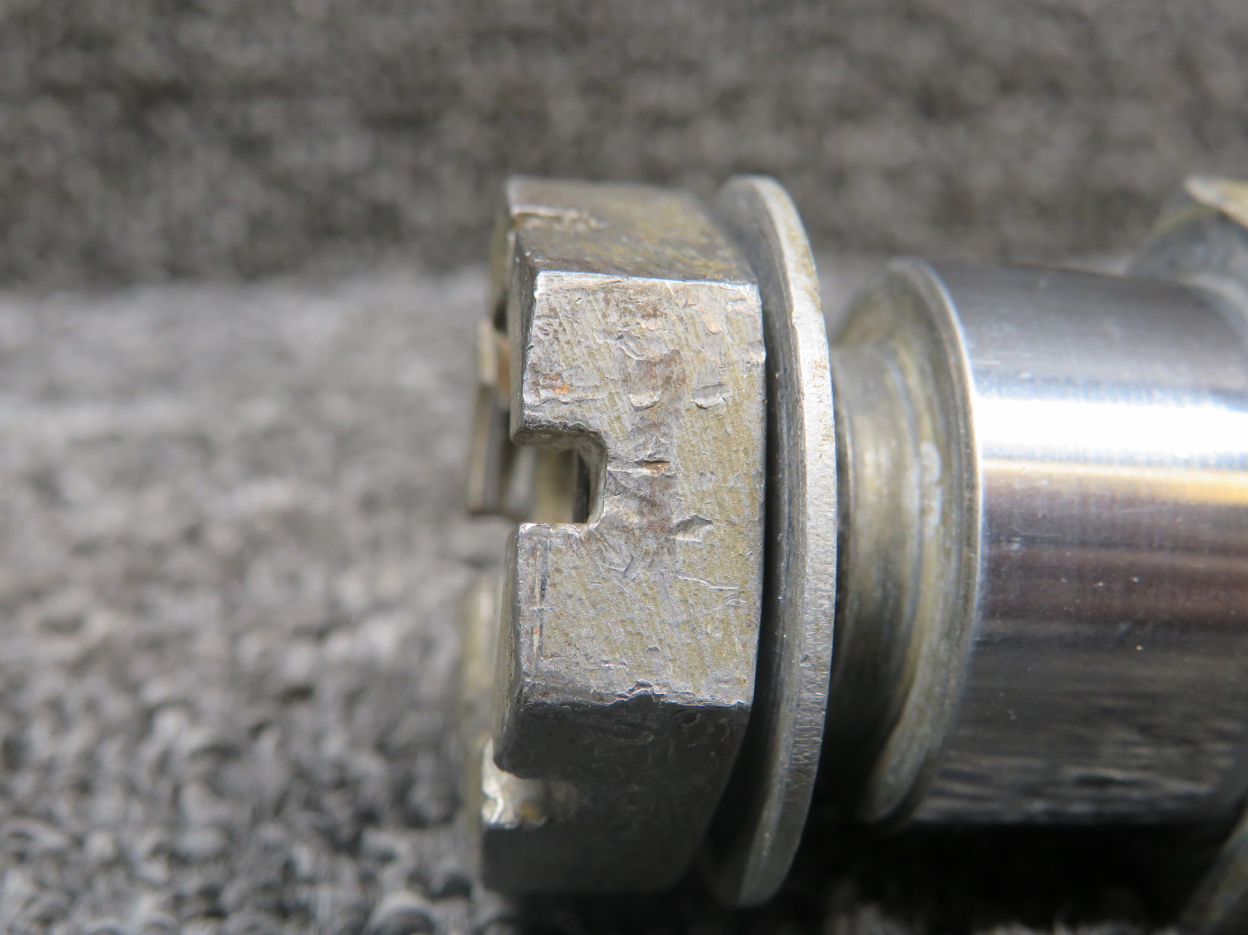 - Wrench marks on nut.