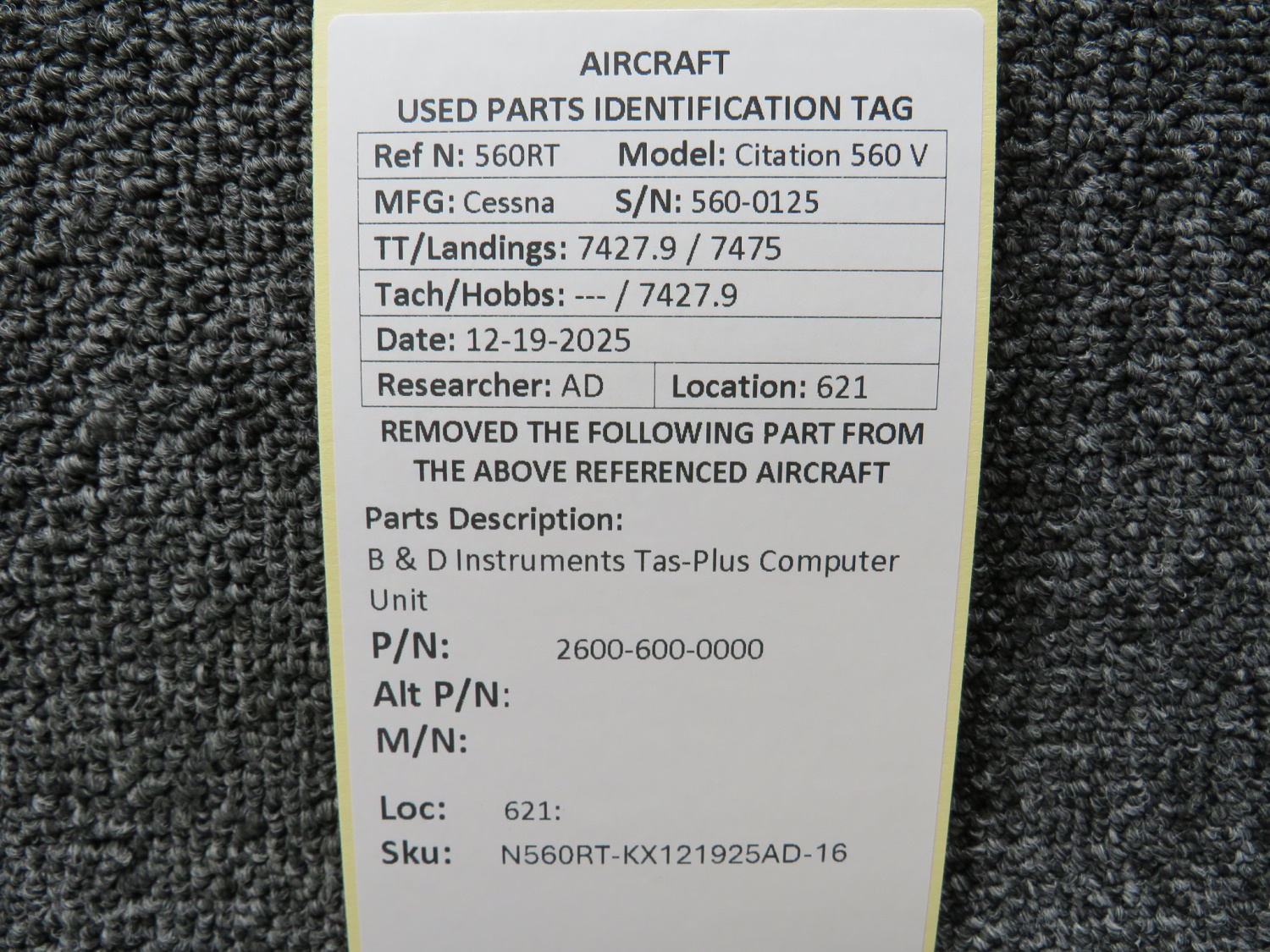 Unless specifically noted, most of our used airplane parts are sold in the condition they were removed, which means you should expect the usual signs of wear and tear.