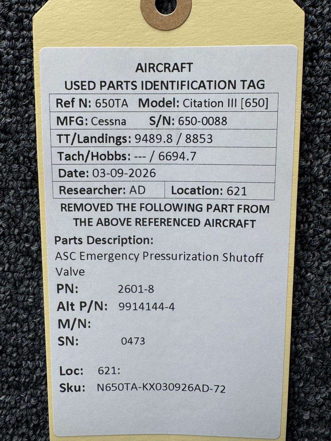 Every part is carefully inspected throughout our process and several times before it goes online. Most items are sold as-removed, just as they came off the aircraft. These parts are not functionally tested. What we do provide is clear photos, full traceability when available, pricing that reflects the as-removed condition, and a no-nonsense 90-day return window.