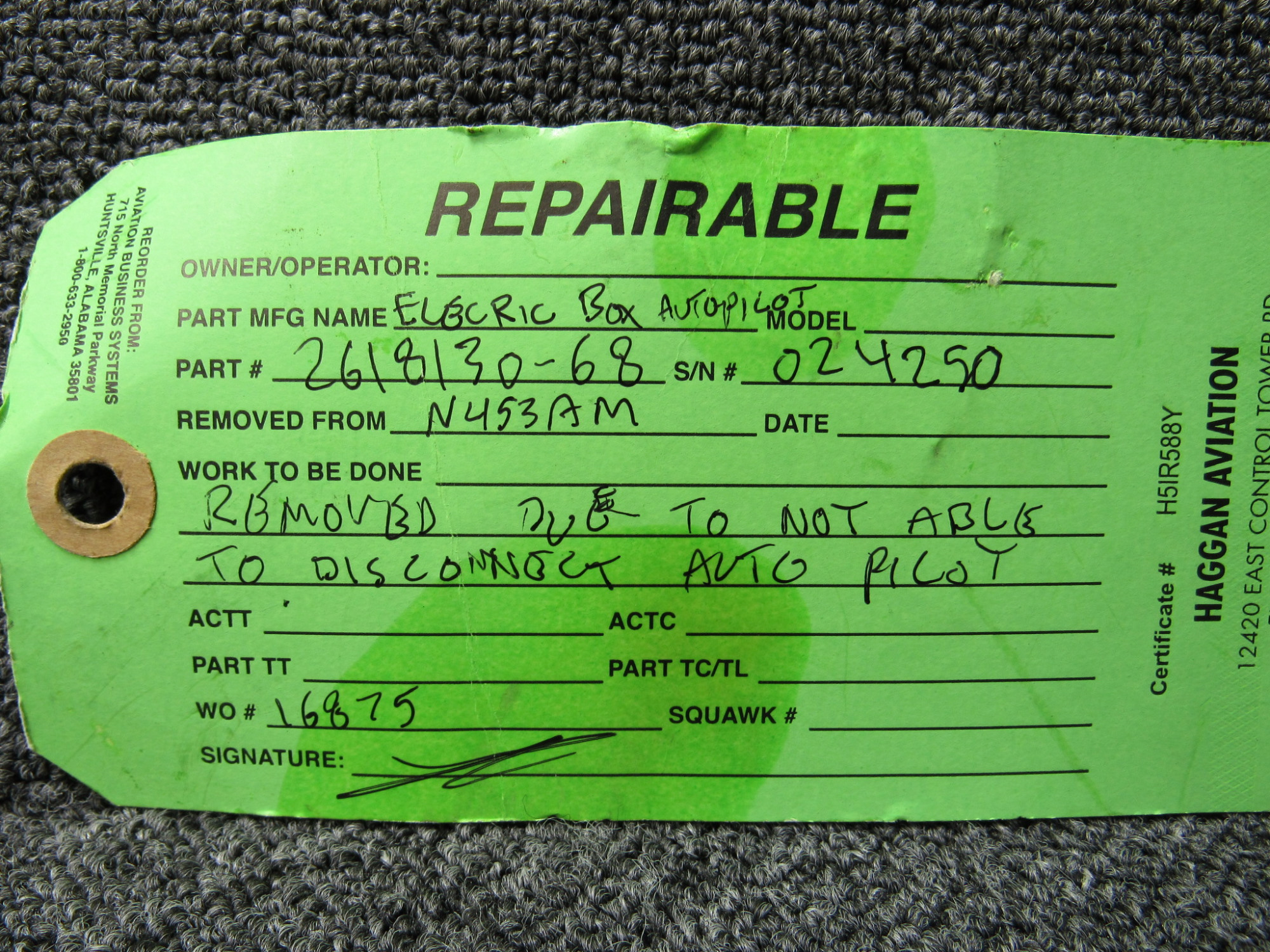 Part removed from aircraft in its original, unaltered state. Most of the inventory available from BAS Part Sales is in As-Removed condition. We removed it from the aircraft in working condition and expect it to pass inspection. As-Removed items come with our 90-day Money-Back Guarantee. Read More