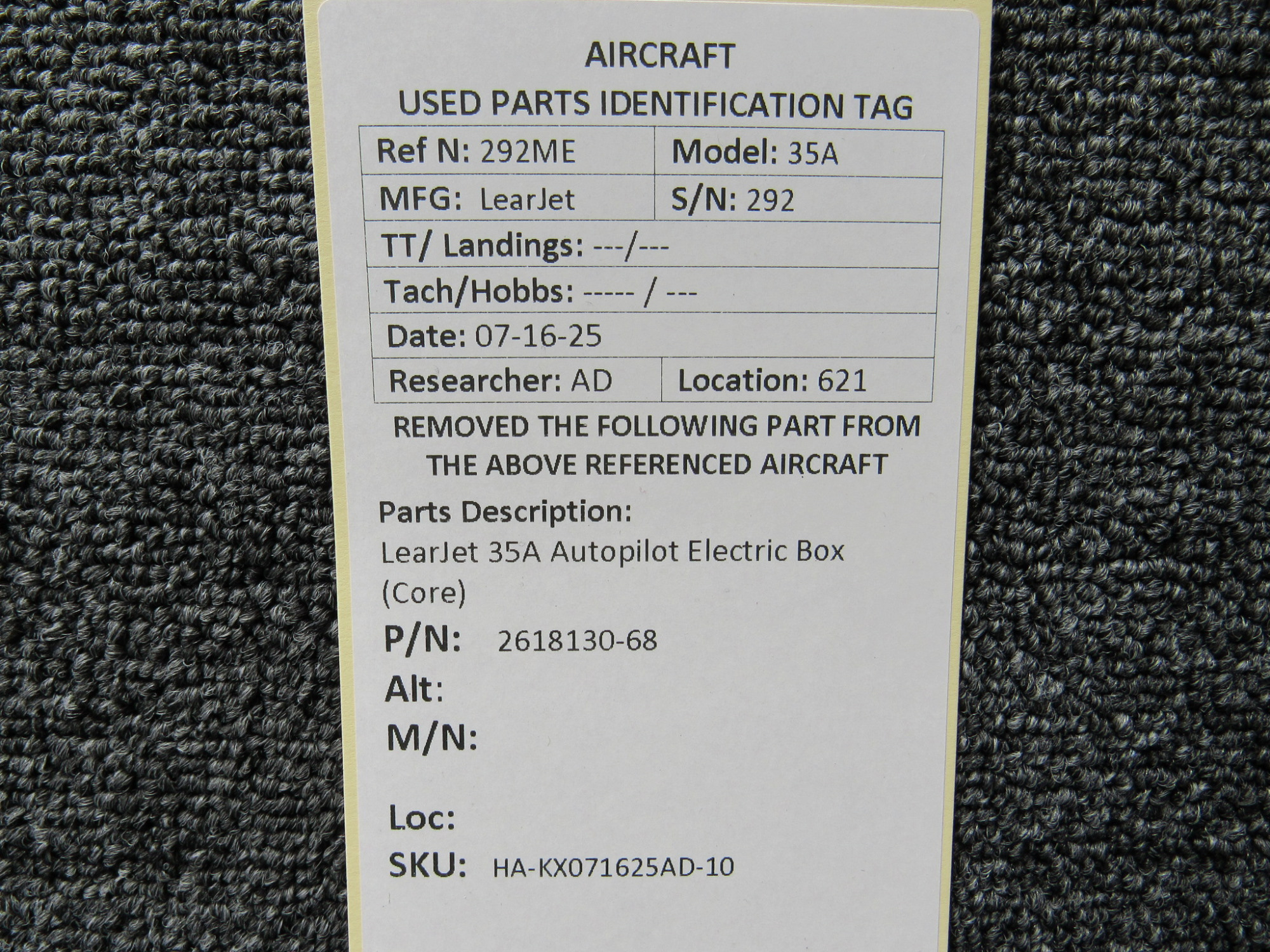 Every part is carefully inspected throughout our process and several times before it goes online. Most items are sold as-removed, just as they came off the aircraft. These parts are not functionally tested. What we do provide is clear photos, full traceability when available, pricing that reflects the as-removed condition, and a no-nonsense 90-day return window.