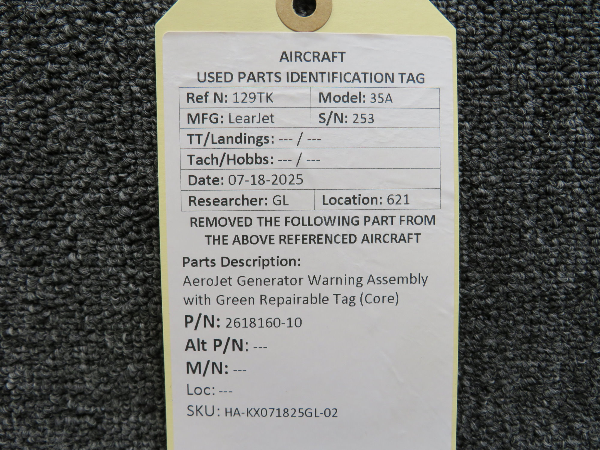 - Green repairable tag