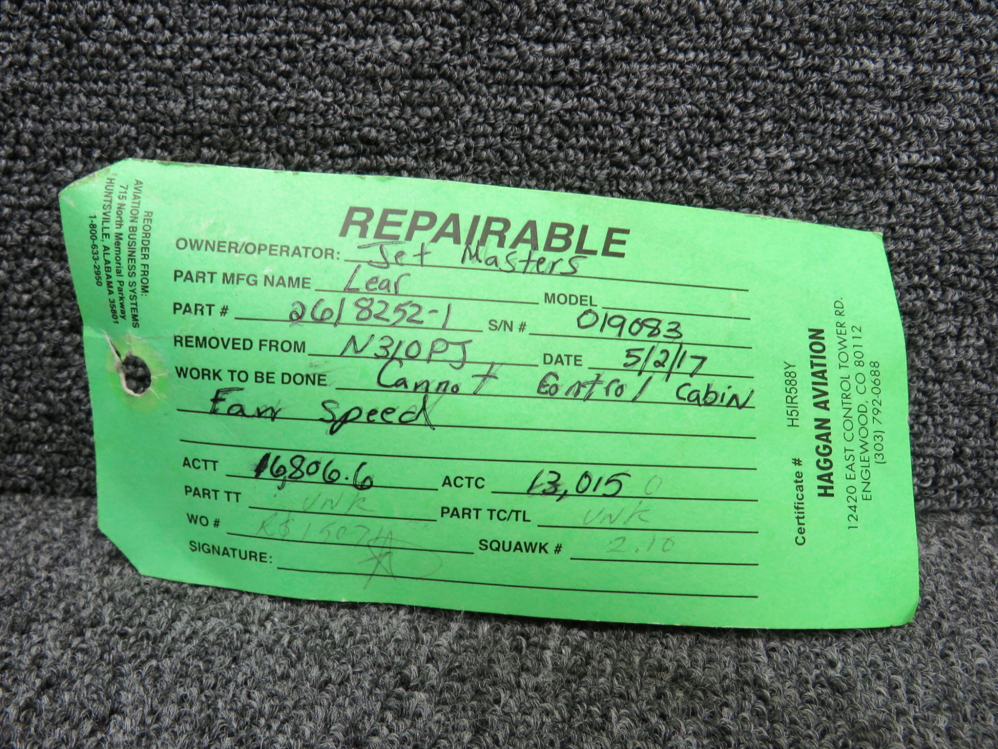 - Includes green repair tag