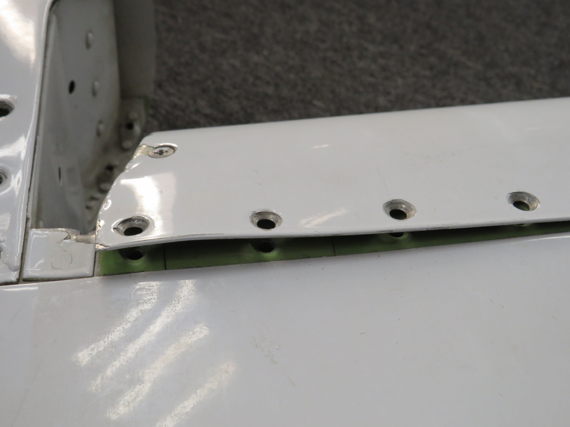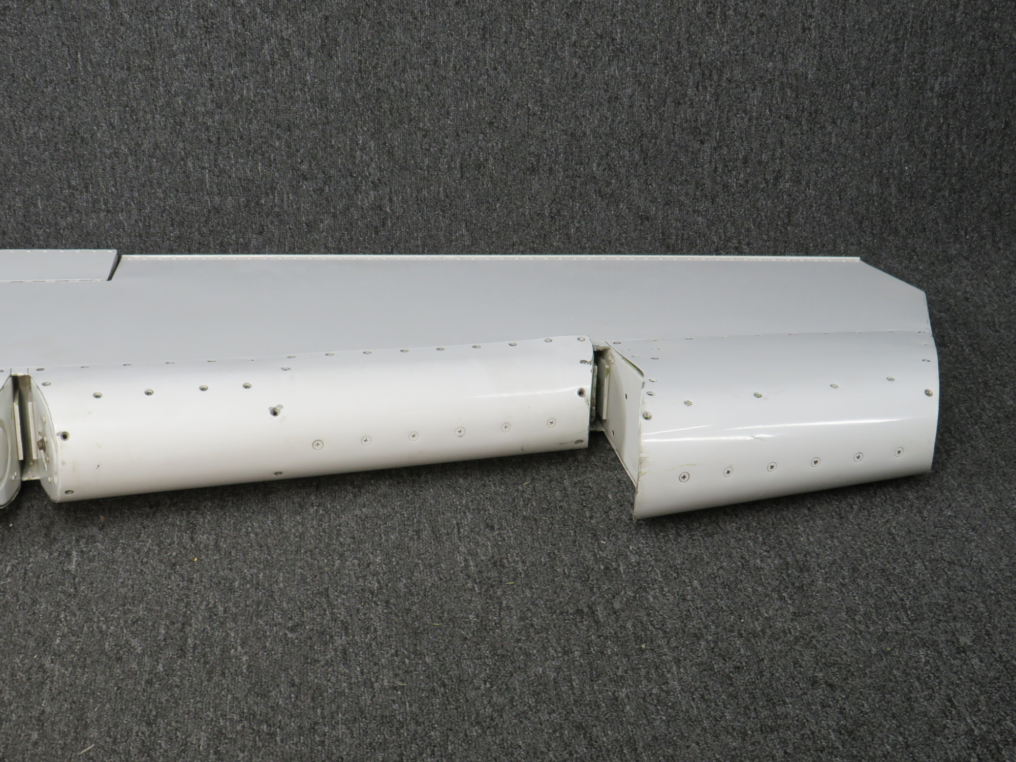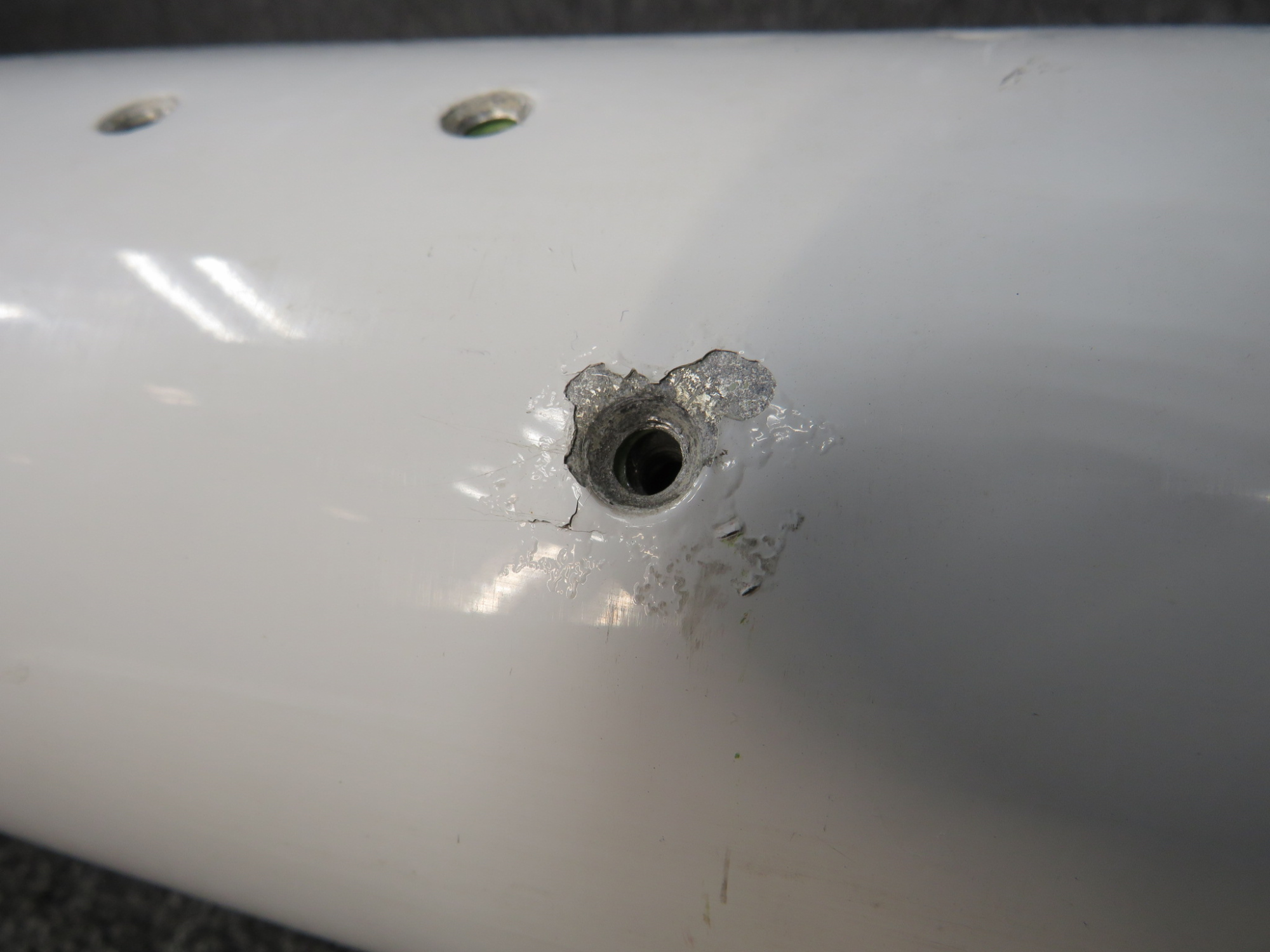 - Small dent on inner edge. Small gash on trim tab.