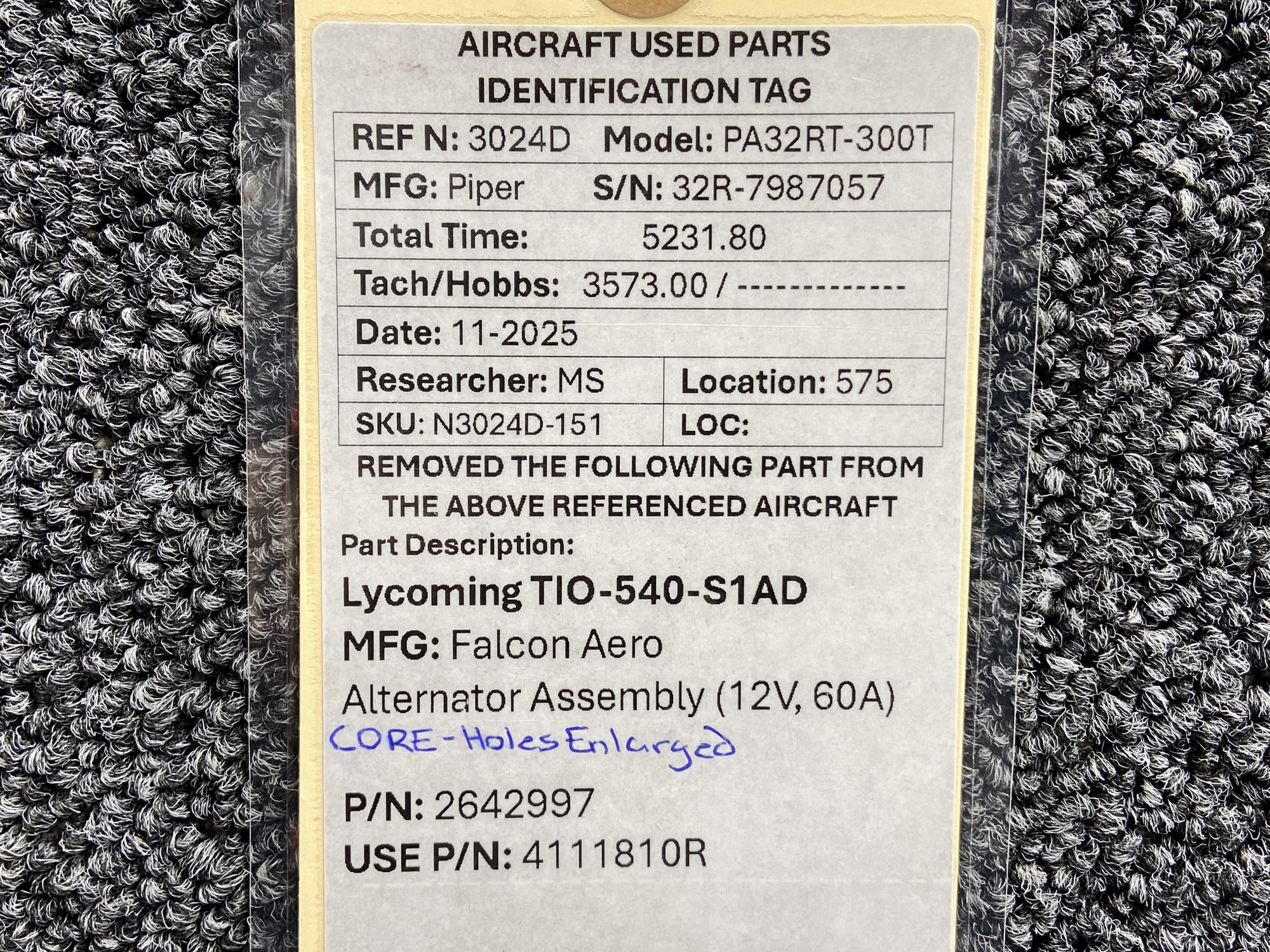 - Removed From: Lycoming TIO-540-S1AD