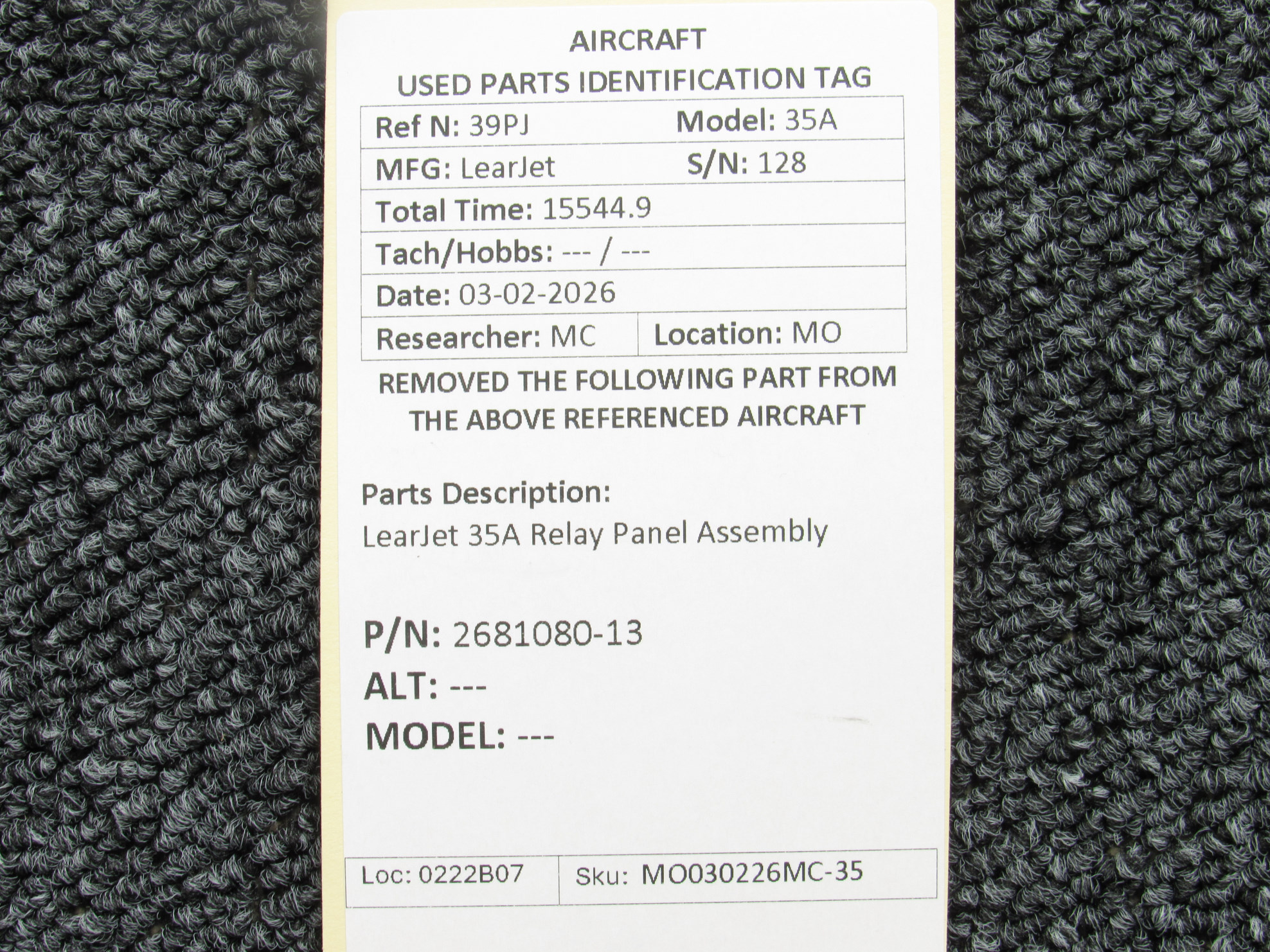 Every part is carefully inspected throughout our process and several times before it goes online. Most items are sold as-removed, just as they came off the aircraft. These parts are not functionally tested. What we do provide is clear photos, full traceability when available, pricing that reflects the as-removed condition, and a no-nonsense 90-day return window.