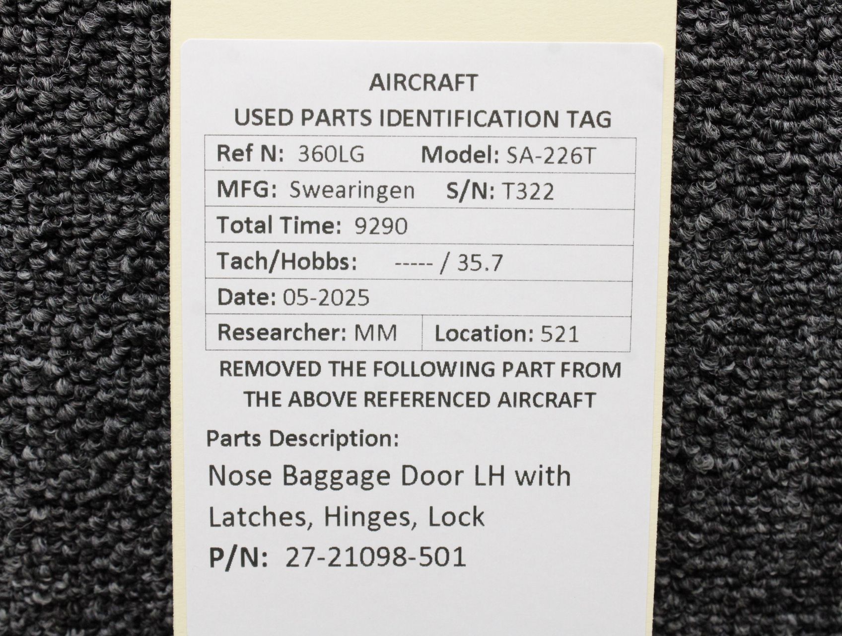 Unless specifically noted, most of our used airplane parts are sold in the condition they were removed, which means you should expect the usual signs of wear and tear.