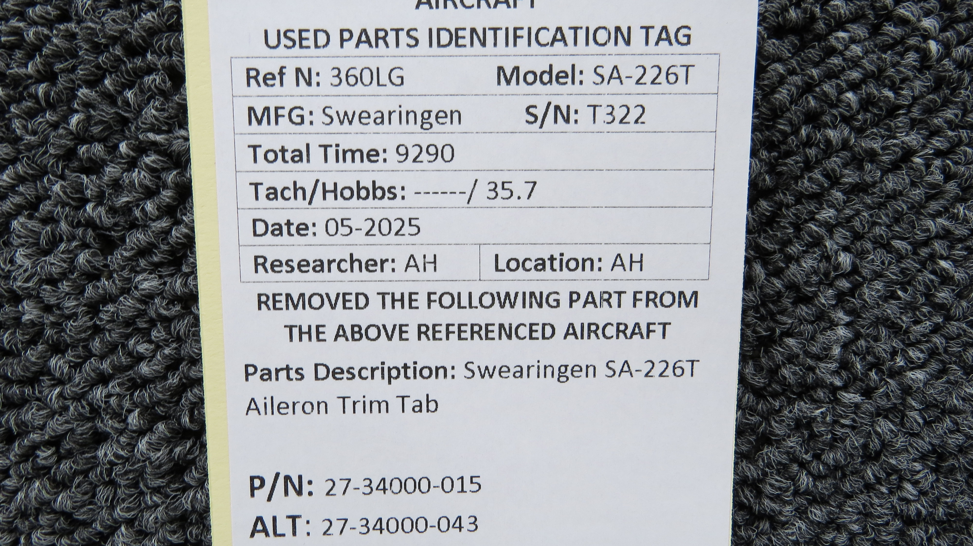 Unless specifically noted, most of our used airplane parts are sold in the condition they were removed, which means you should expect the usual signs of wear and tear.