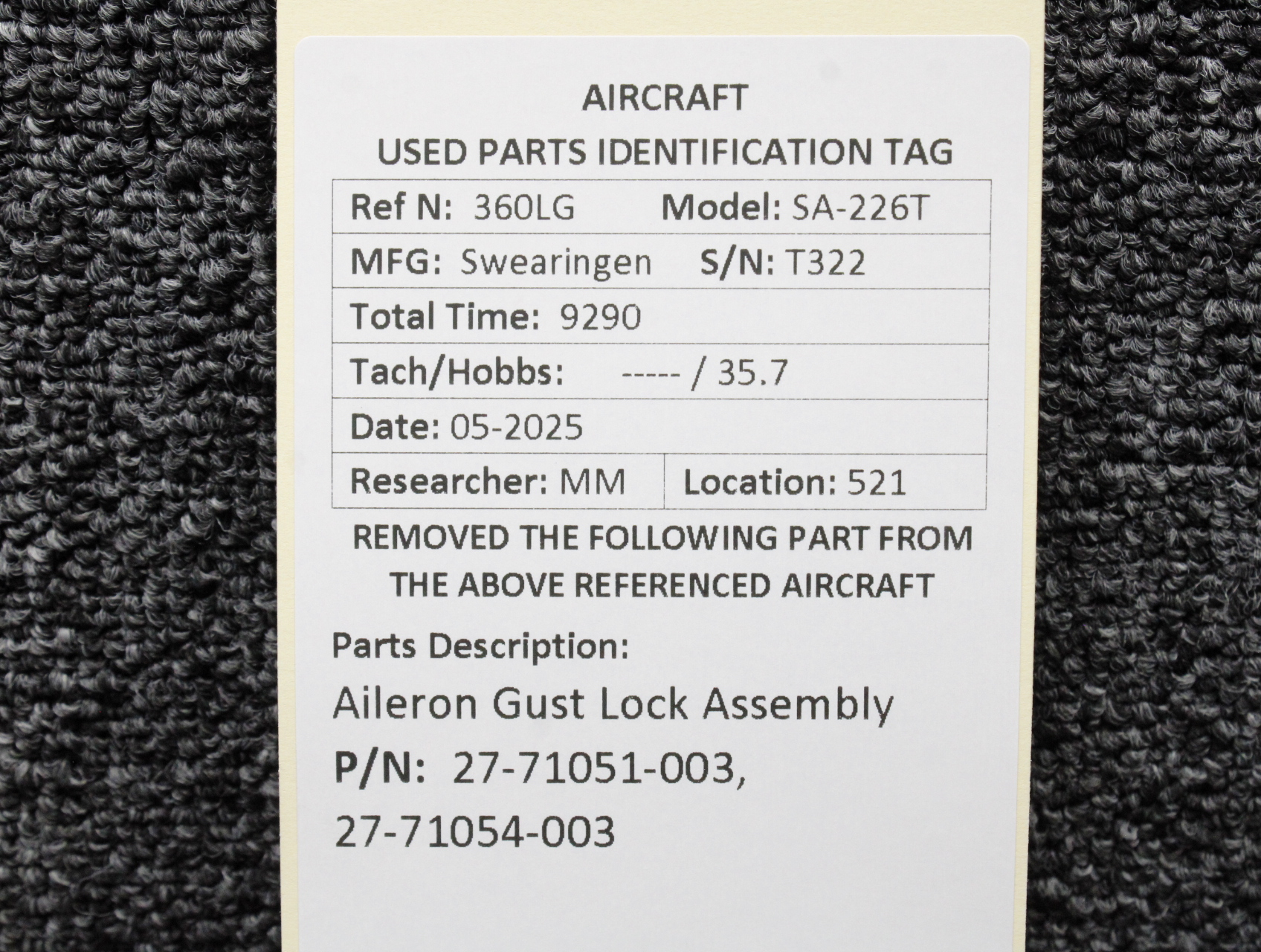 Unless specifically noted, most of our used airplane parts are sold in the condition they were removed, which means you should expect the usual signs of wear and tear.