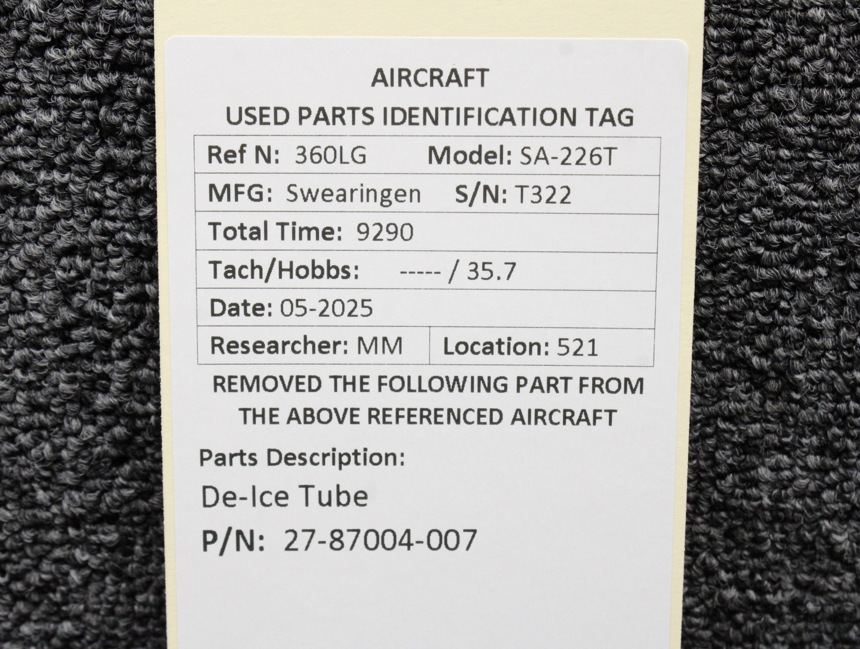 Every part is carefully inspected throughout our process and several times before it goes online. Most items are sold as-removed, just as they came off the aircraft. These parts are not functionally tested. What we do provide is clear photos, full traceability when available, pricing that reflects the as-removed condition, and a no-nonsense 90-day return window.