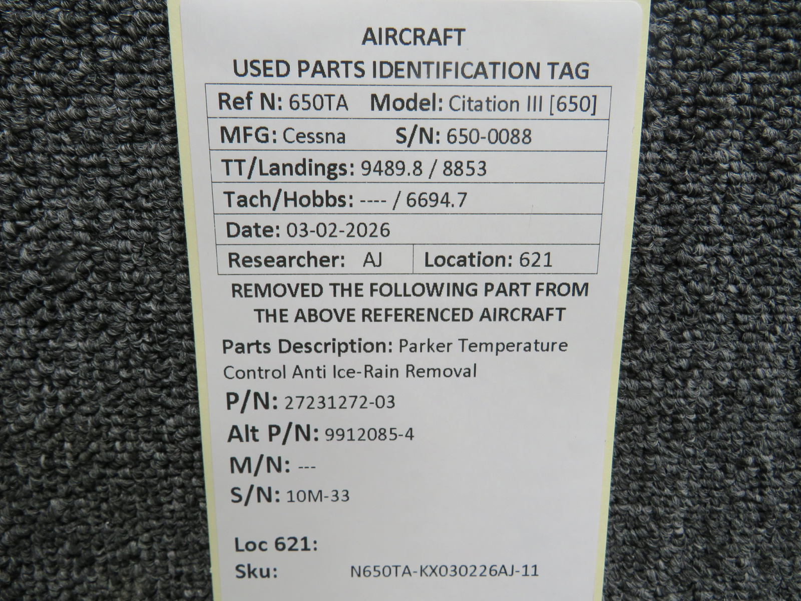 Every part is carefully inspected throughout our process and several times before it goes online. Most items are sold as-removed, just as they came off the aircraft. These parts are not functionally tested. What we do provide is clear photos, full traceability when available, pricing that reflects the as-removed condition, and a no-nonsense 90-day return window.