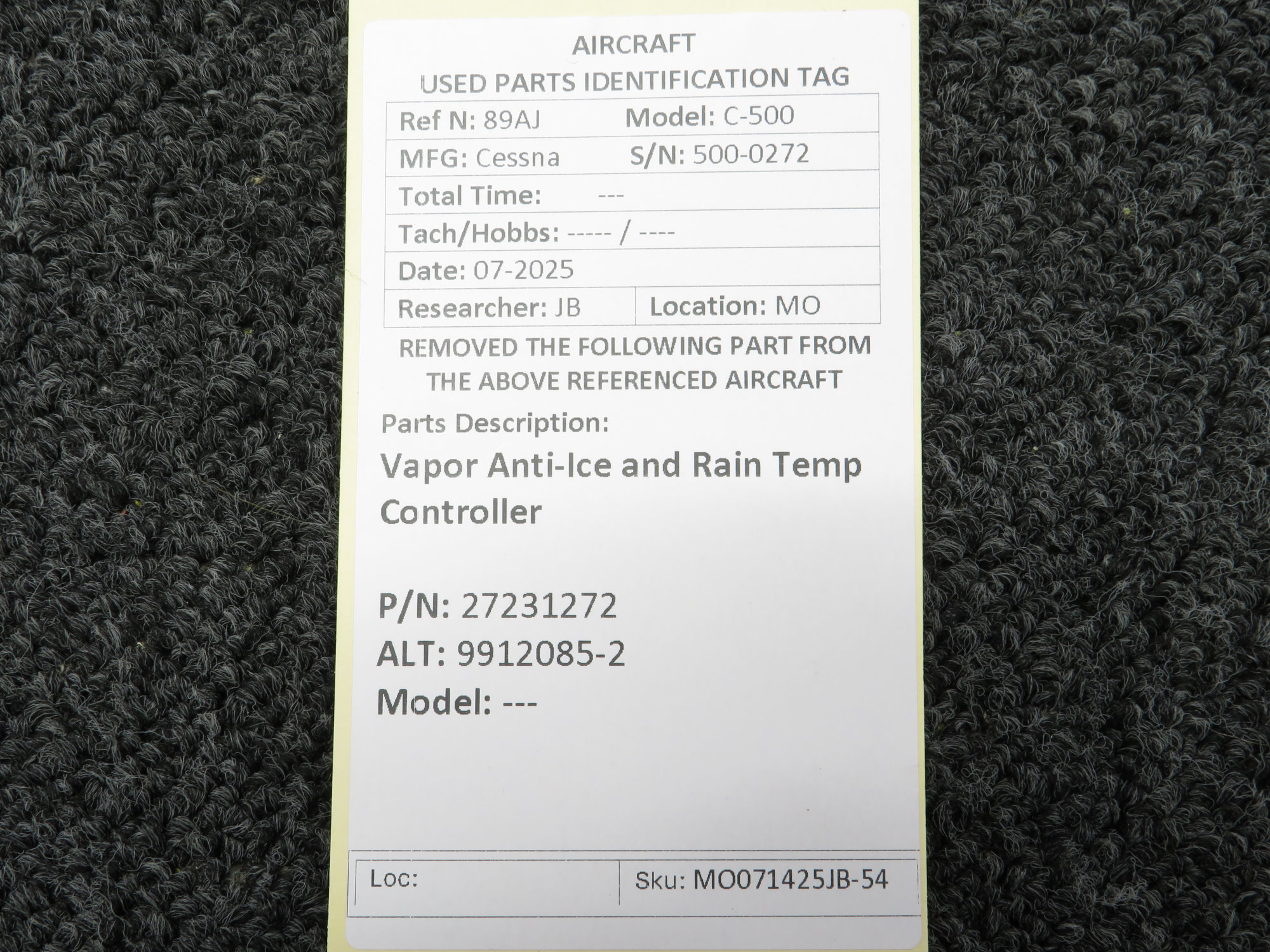 Unless specifically noted, most of our used airplane parts are sold in the condition they were removed, which means you should expect the usual signs of wear and tear.