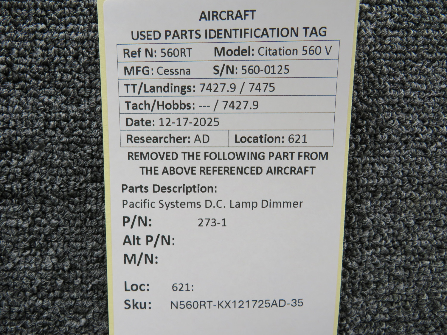 Unless specifically noted, most of our used airplane parts are sold in the condition they were removed, which means you should expect the usual signs of wear and tear.