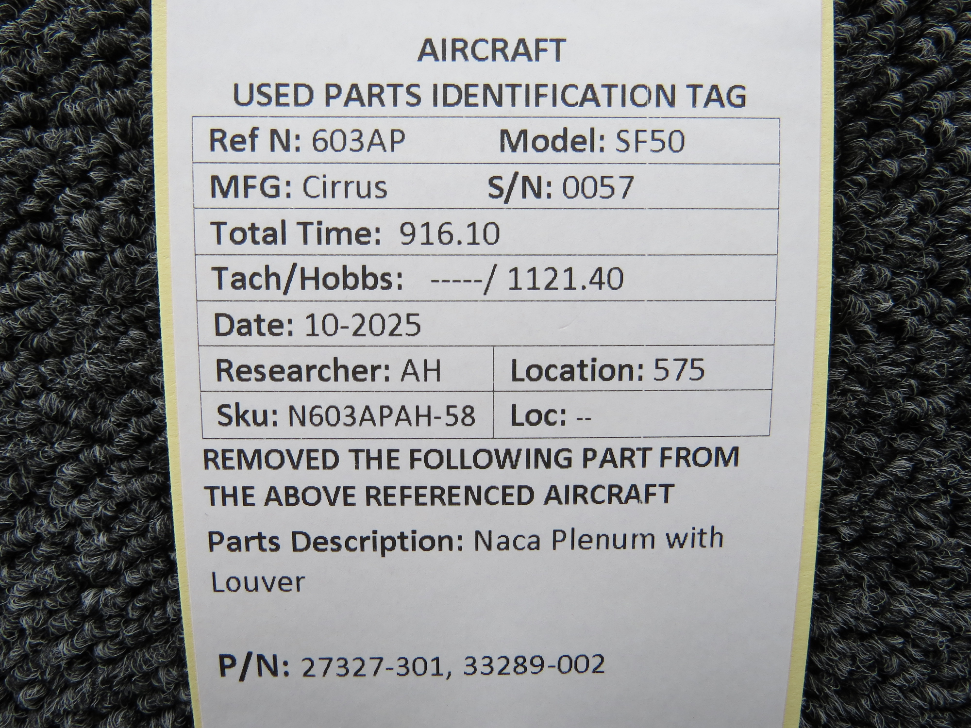 Every part is carefully inspected throughout our process and several times before it goes online. Most items are sold as-removed, just as they came off the aircraft. These parts are not functionally tested. What we do provide is clear photos, full traceability when available, pricing that reflects the as-removed condition, and a no-nonsense 90-day return window.