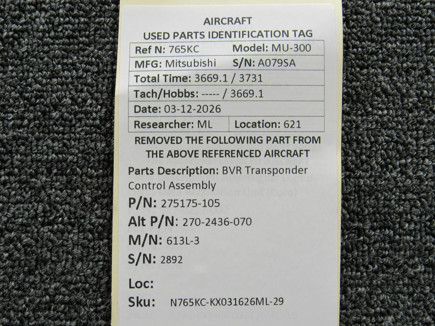 Every part is carefully inspected throughout our process and several times before it goes online. Most items are sold as-removed, just as they came off the aircraft. These parts are not functionally tested. What we do provide is clear photos, full traceability when available, pricing that reflects the as-removed condition, and a no-nonsense 90-day return window.