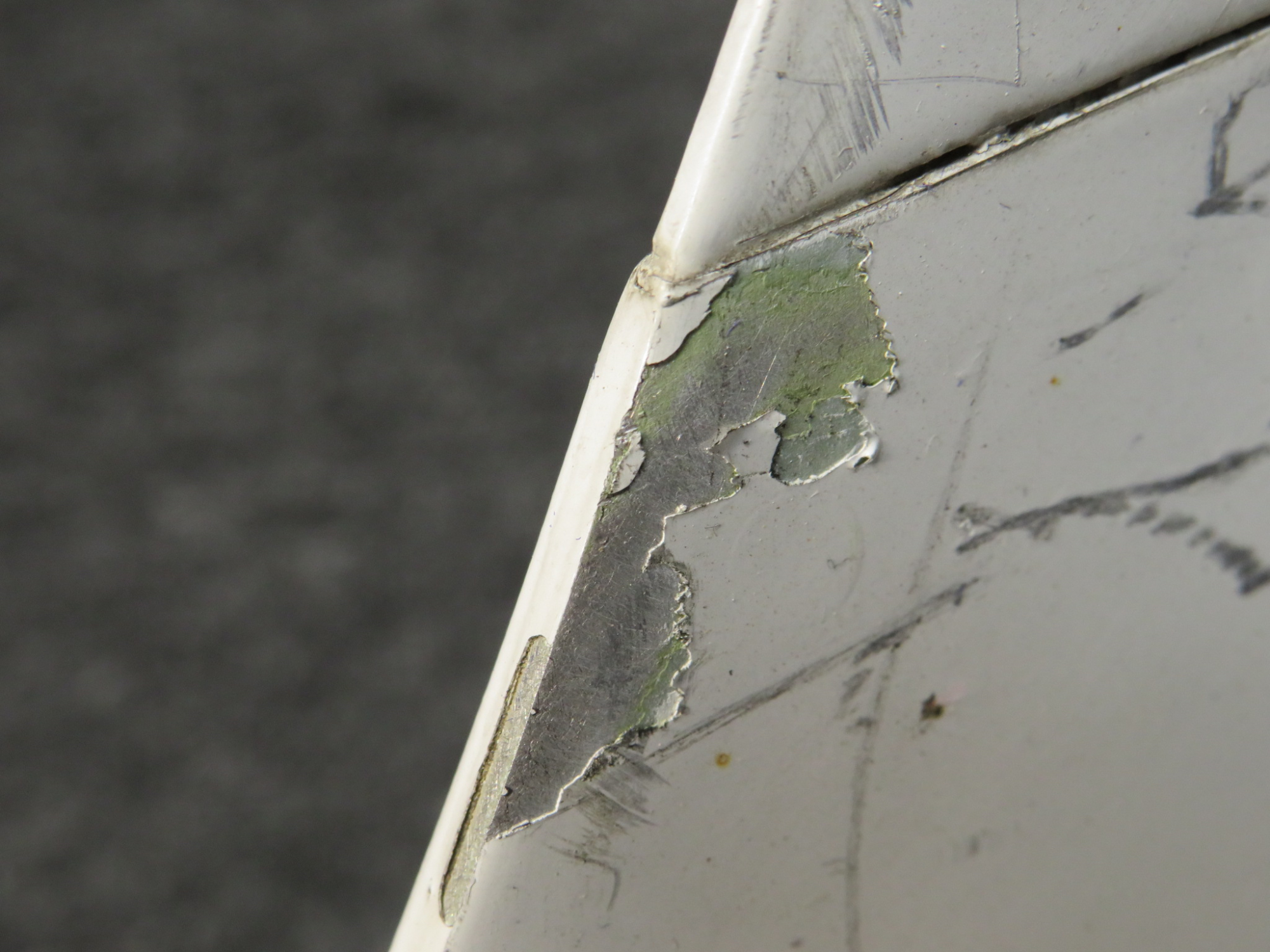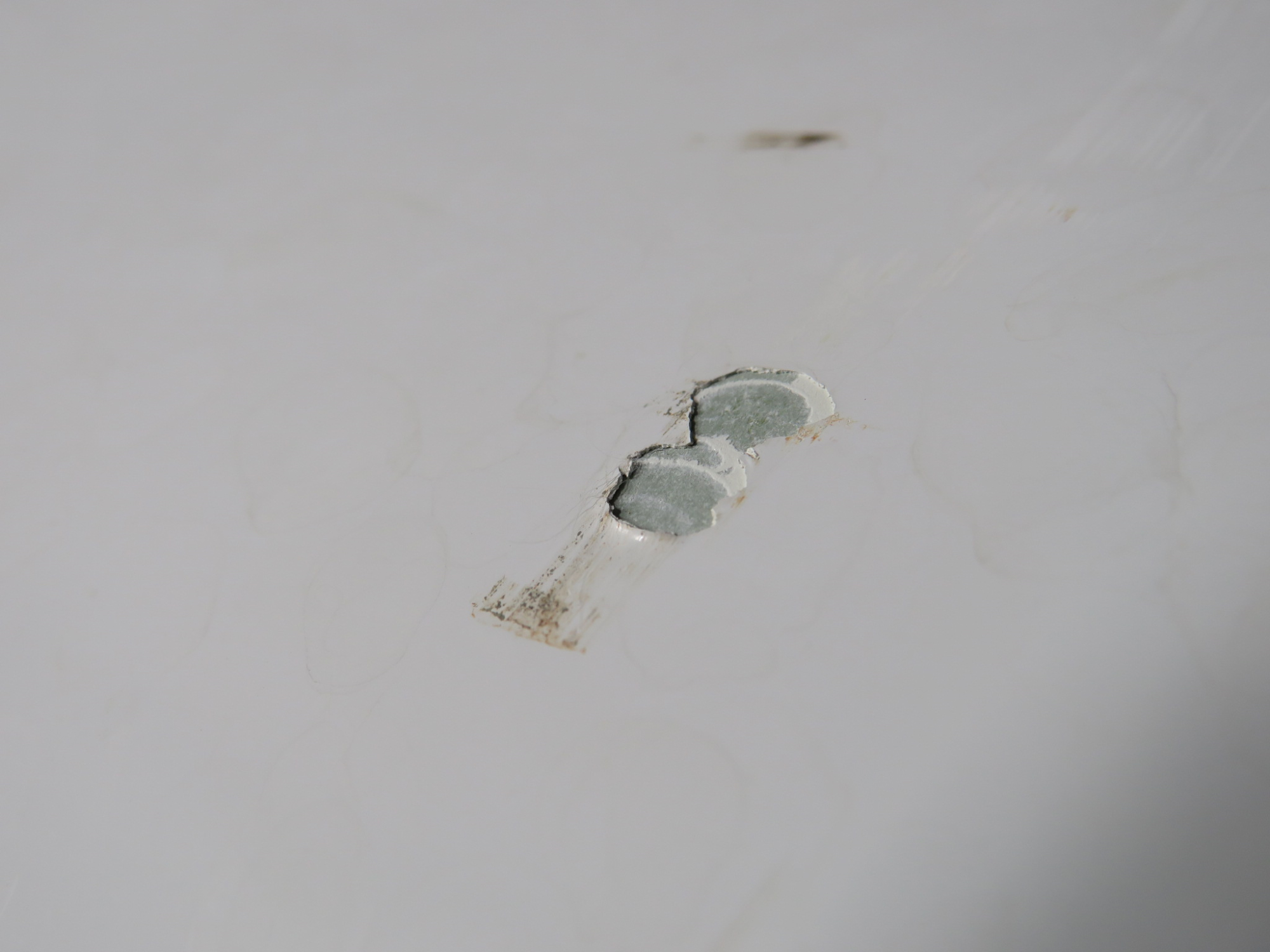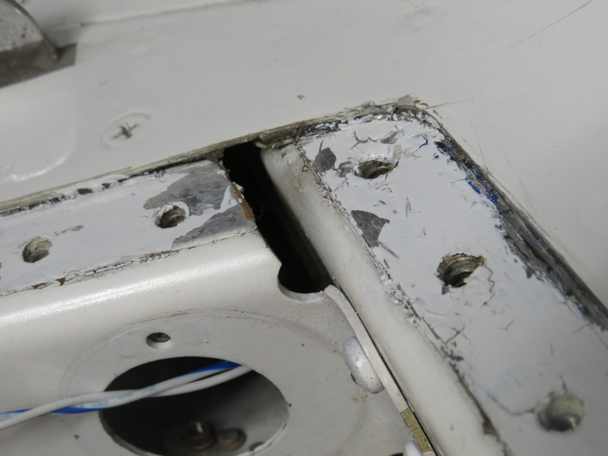 - Paint chipped around mount holes.