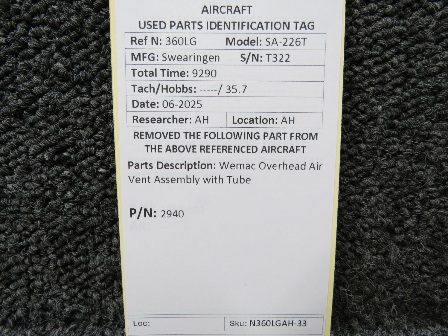 Unless specifically noted, most of our used airplane parts are sold in the condition they were removed, which means you should expect the usual signs of wear and tear.