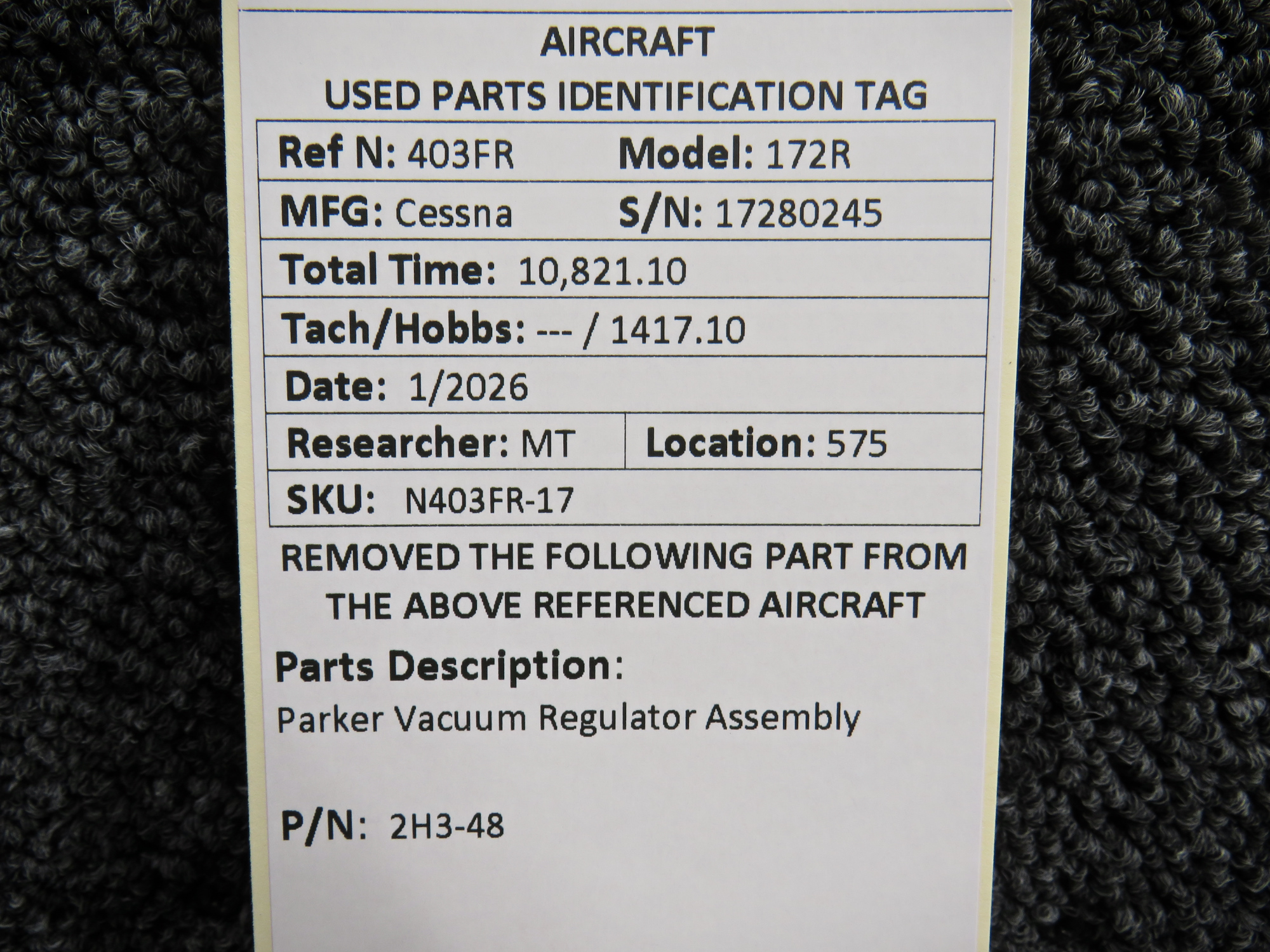 Unless specifically noted, most of our used airplane parts are sold in the condition they were removed, which means you should expect the usual signs of wear and tear.