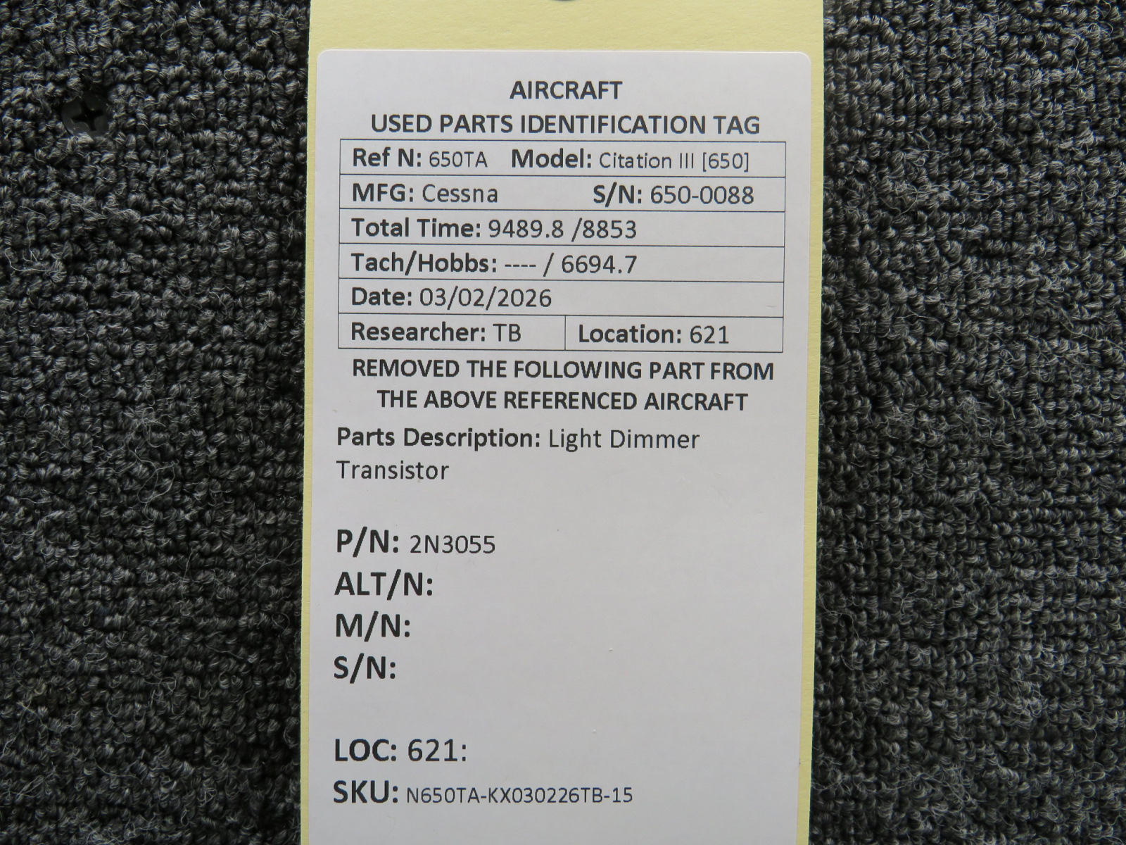 Every part is carefully inspected throughout our process and several times before it goes online. Most items are sold as-removed, just as they came off the aircraft. These parts are not functionally tested. What we do provide is clear photos, full traceability when available, pricing that reflects the as-removed condition, and a no-nonsense 90-day return window.