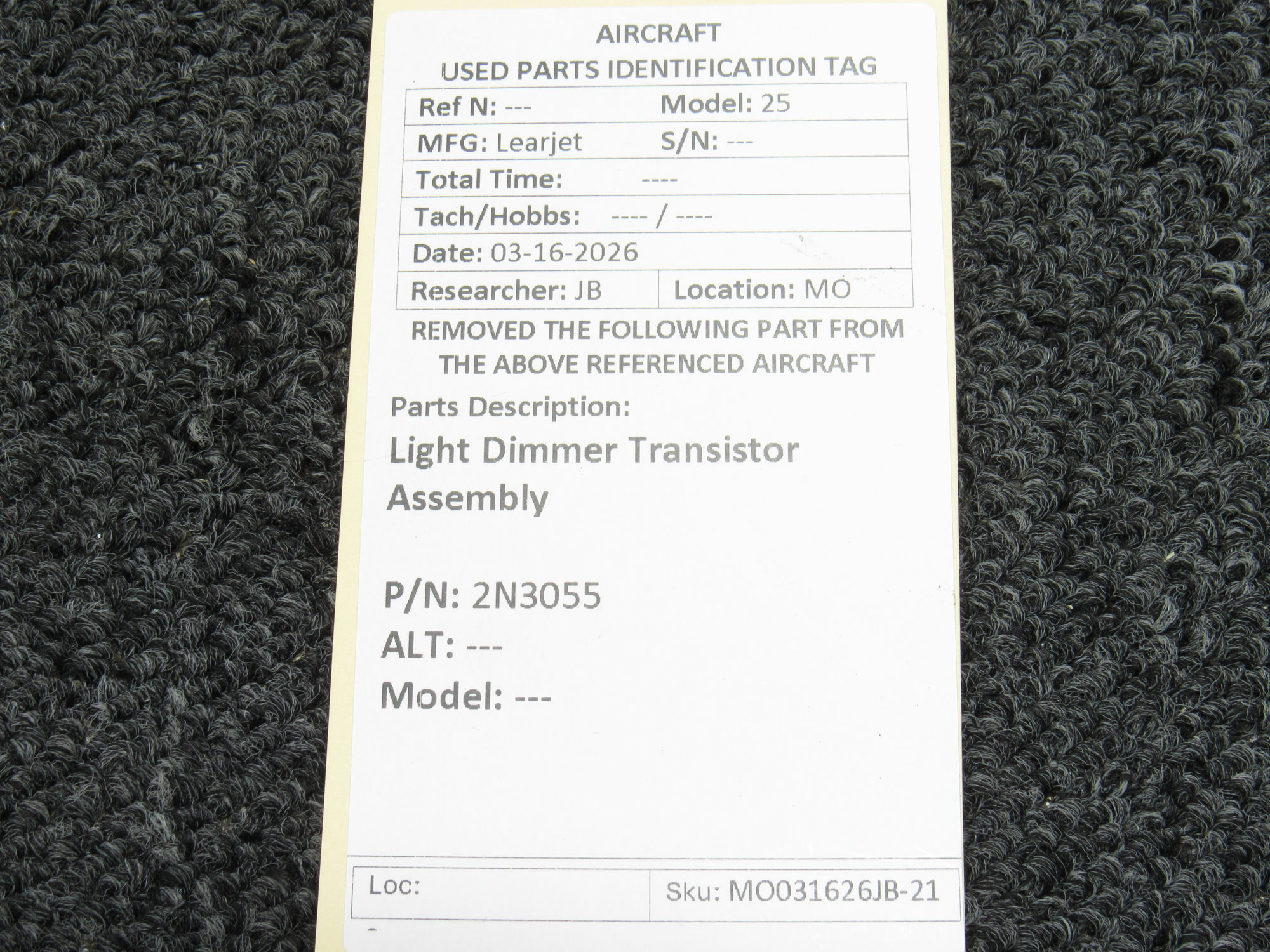 Every part is carefully inspected throughout our process and several times before it goes online. Most items are sold as-removed, just as they came off the aircraft. These parts are not functionally tested. What we do provide is clear photos, full traceability when available, pricing that reflects the as-removed condition, and a no-nonsense 90-day return window.
