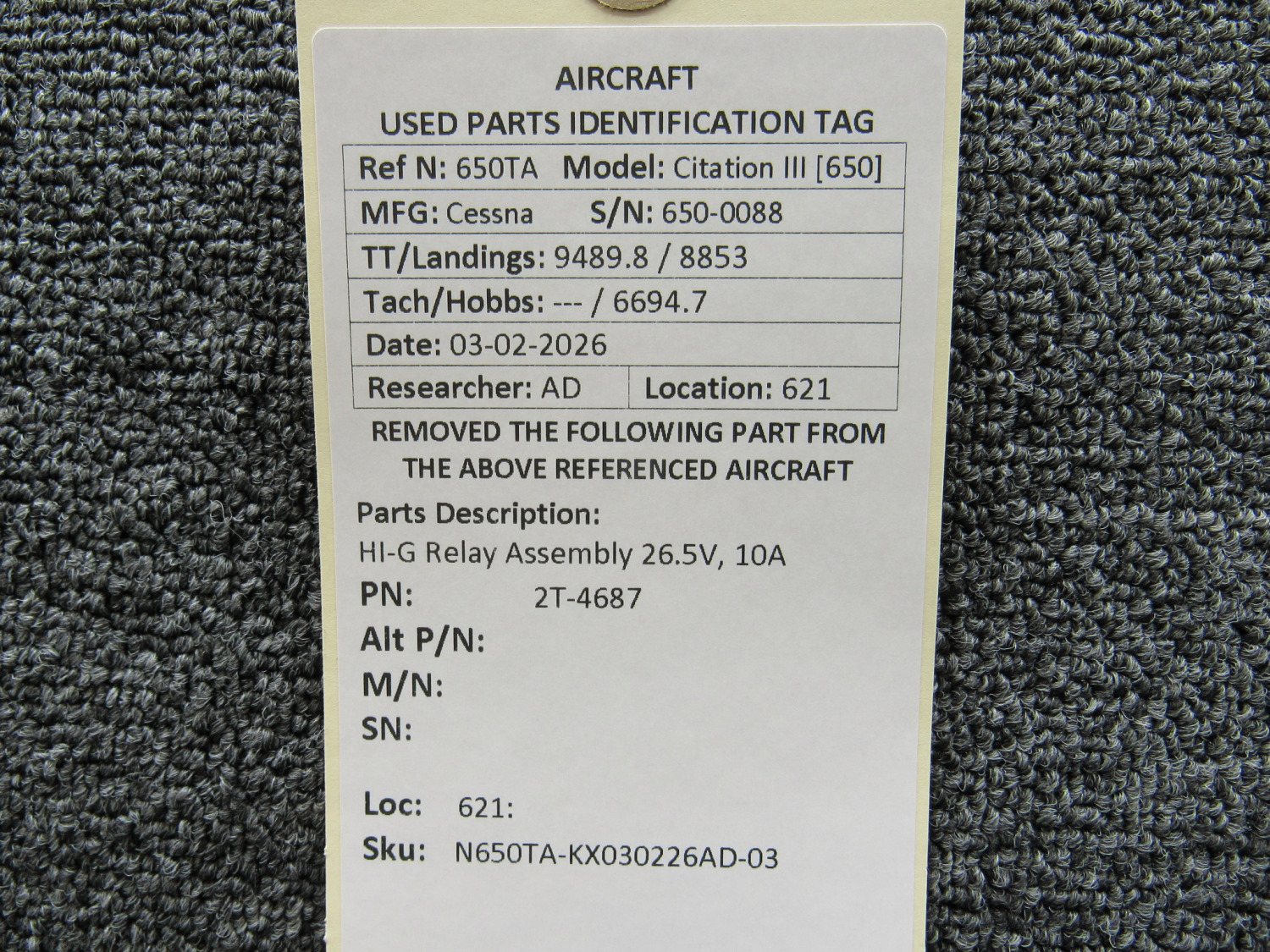 Every part is carefully inspected throughout our process and several times before it goes online. Most items are sold as-removed, just as they came off the aircraft. These parts are not functionally tested. What we do provide is clear photos, full traceability when available, pricing that reflects the as-removed condition, and a no-nonsense 90-day return window.