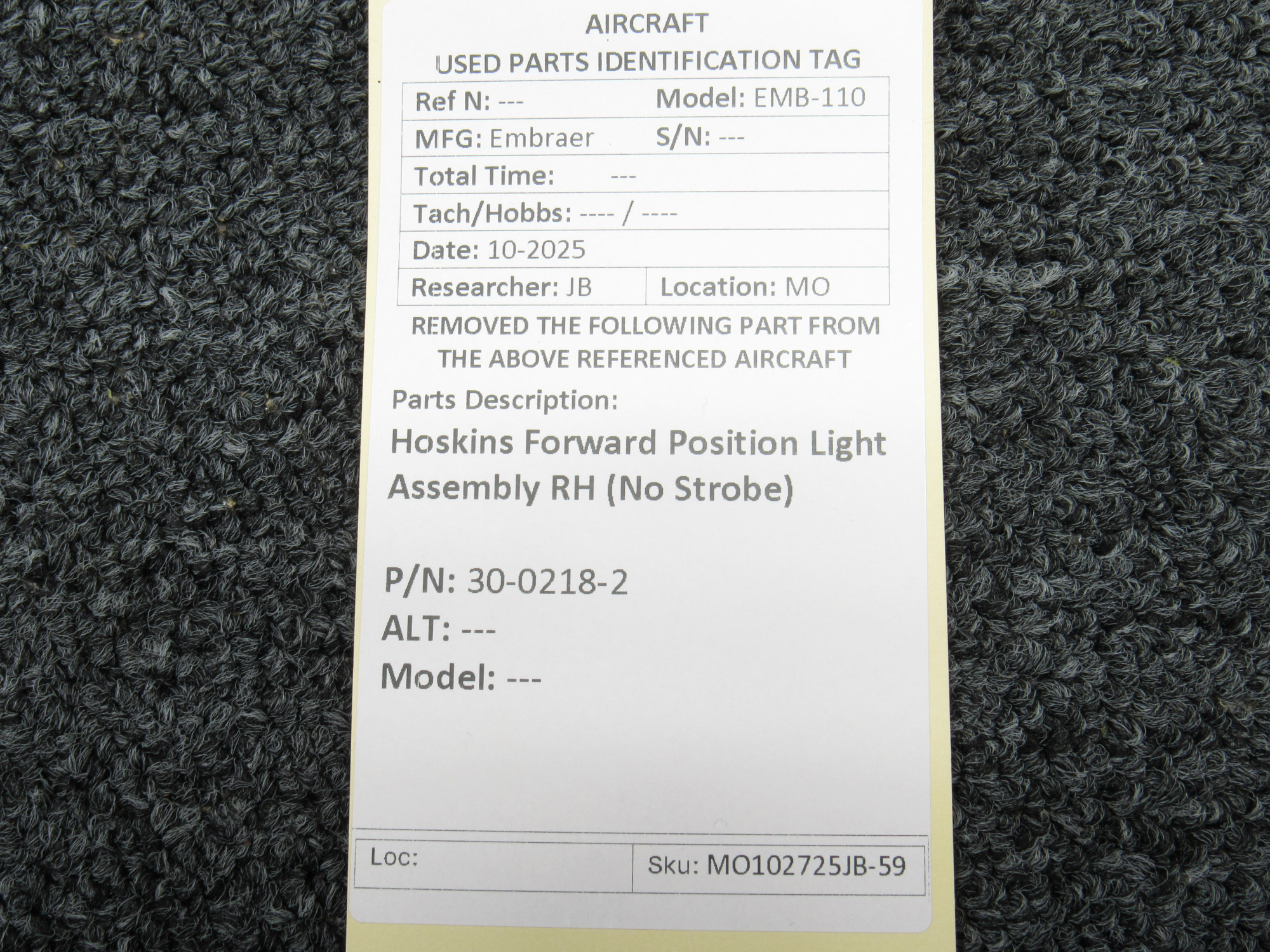 Unless specifically noted, most of our used airplane parts are sold in the condition they were removed, which means you should expect the usual signs of wear and tear.