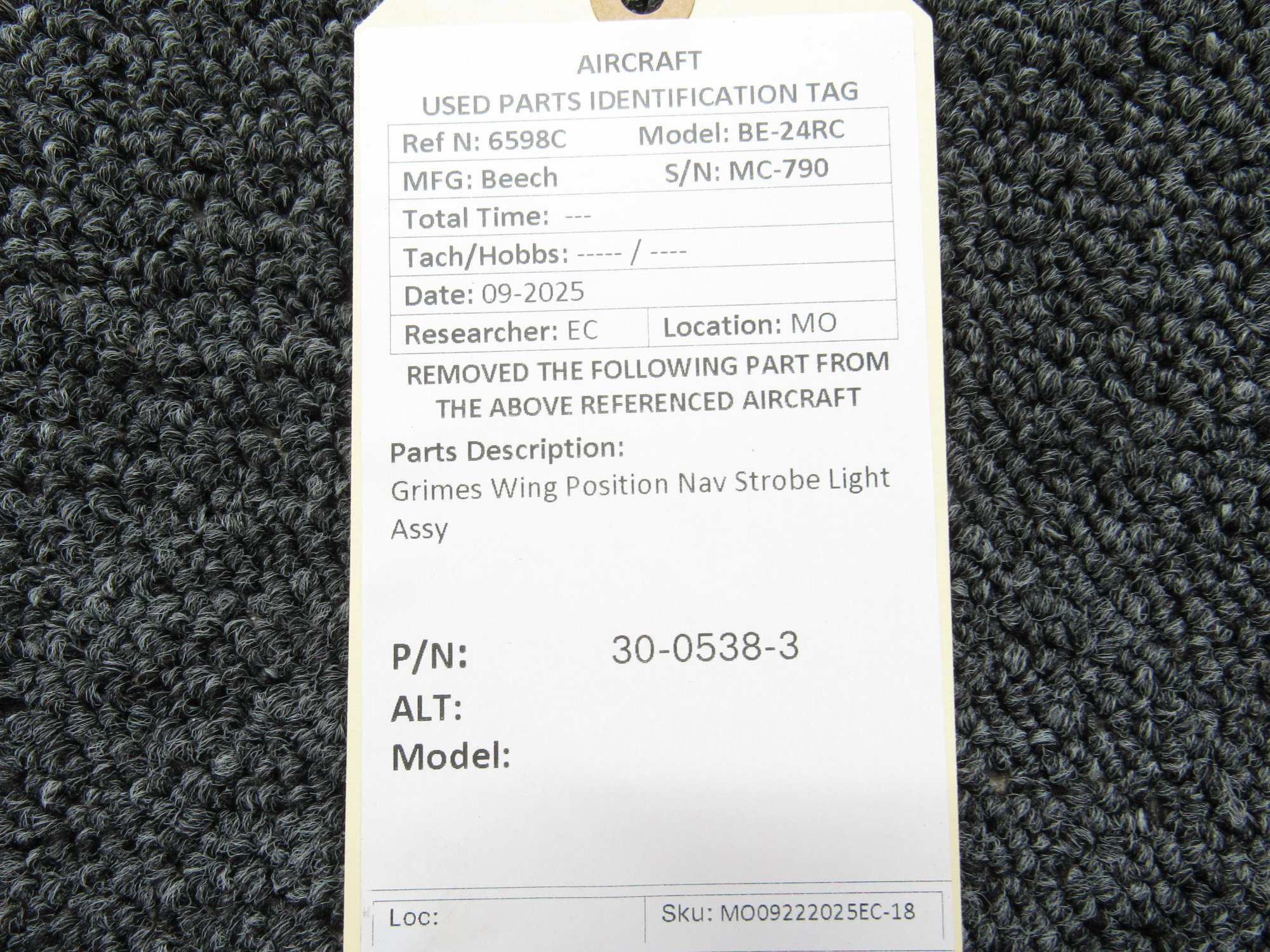 Unless specifically noted, most of our used airplane parts are sold in the condition they were removed, which means you should expect the usual signs of wear and tear.