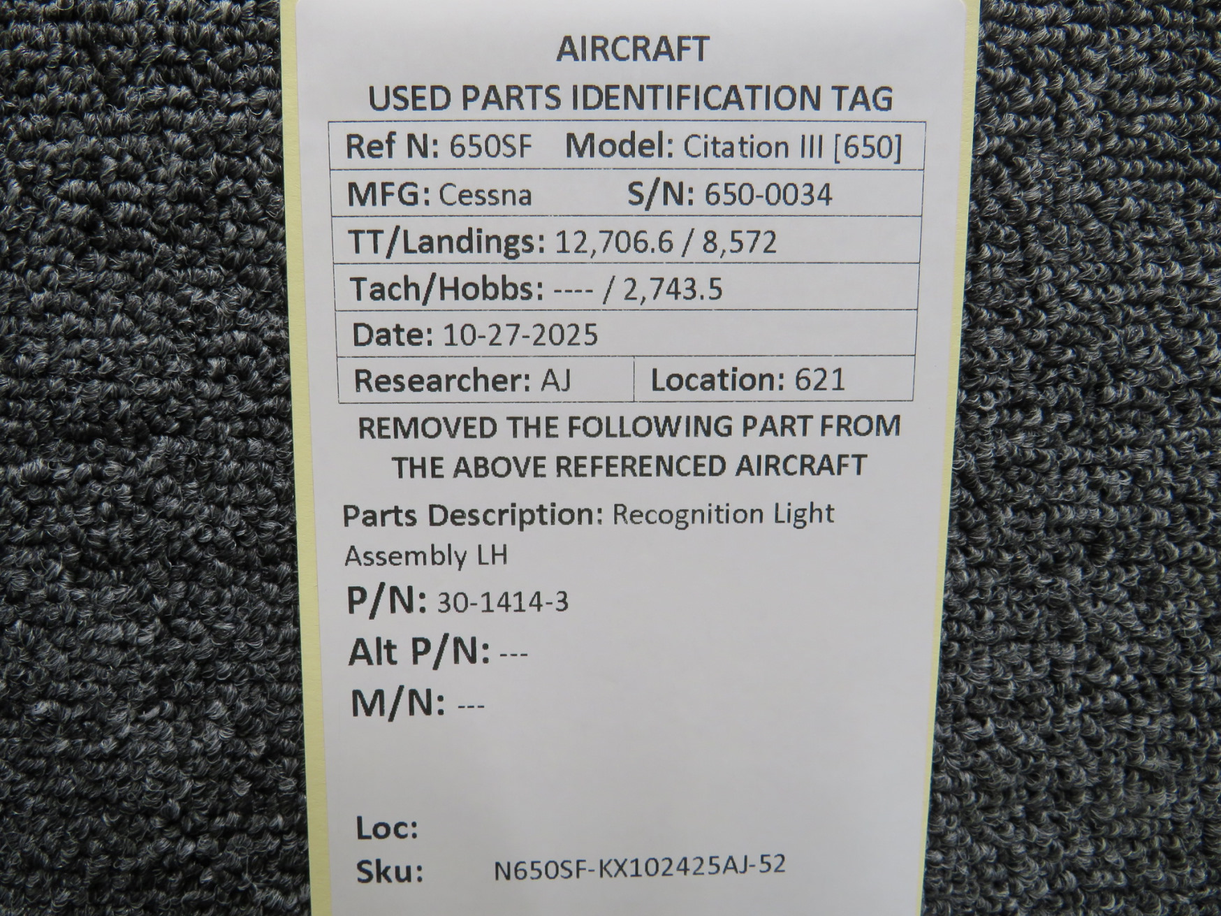 Unless specifically noted, most of our used airplane parts are sold in the condition they were removed, which means you should expect the usual signs of wear and tear.