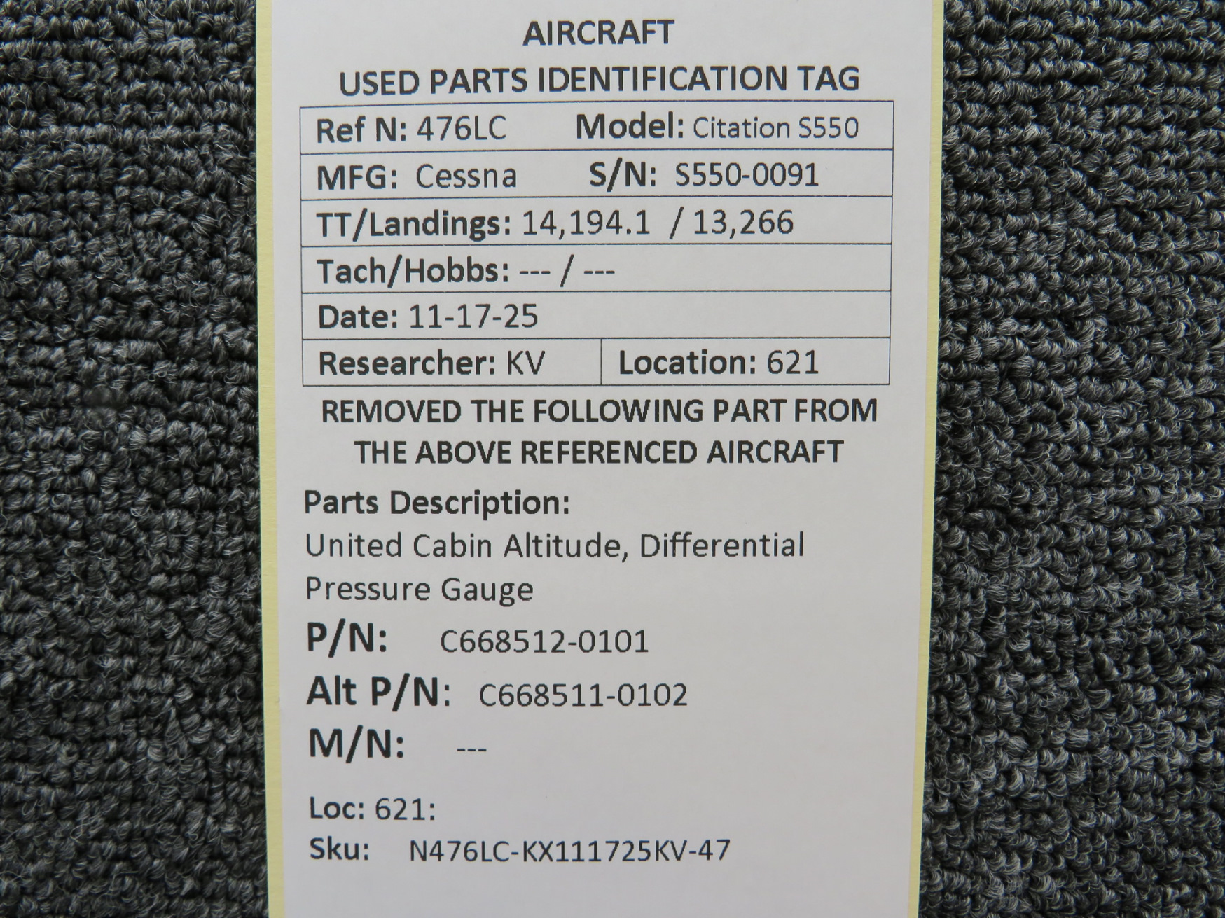 Unless specifically noted, most of our used airplane parts are sold in the condition they were removed, which means you should expect the usual signs of wear and tear.