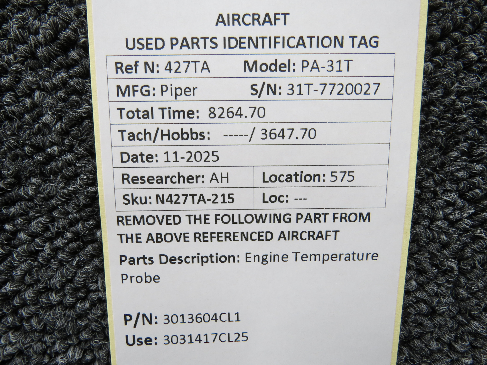 Unless specifically noted, most of our used airplane parts are sold in the condition they were removed, which means you should expect the usual signs of wear and tear.