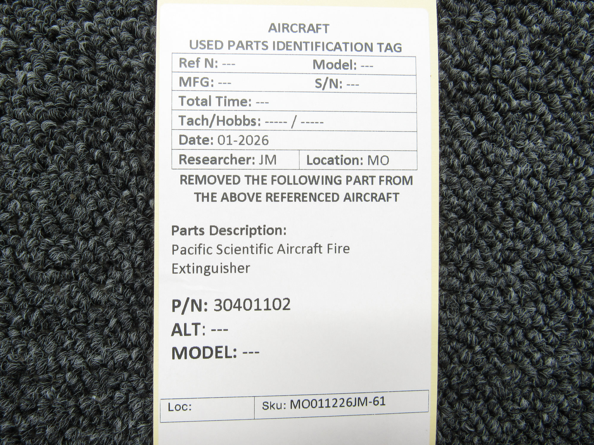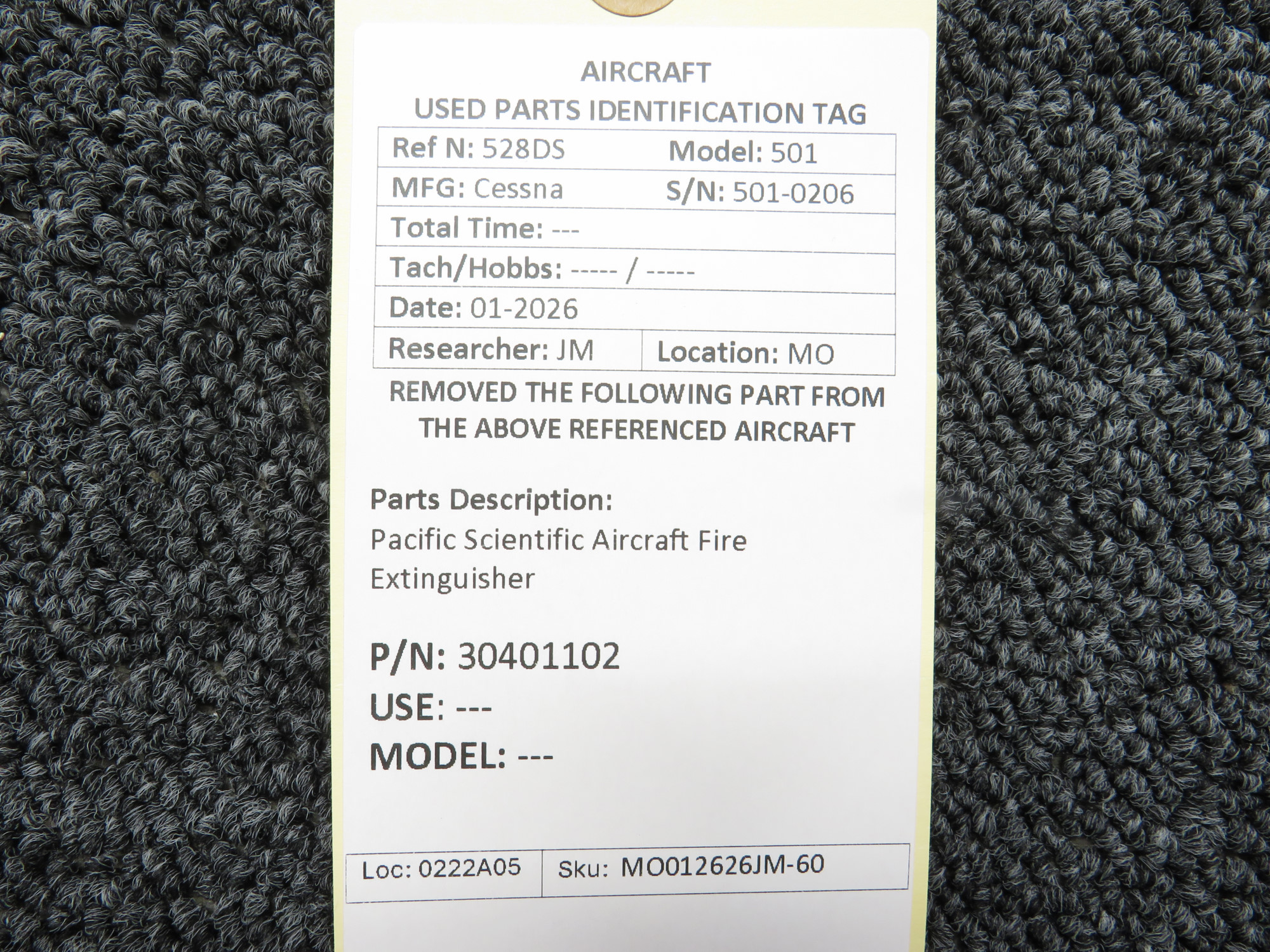 - MO011226JM-62JL - Repair tag