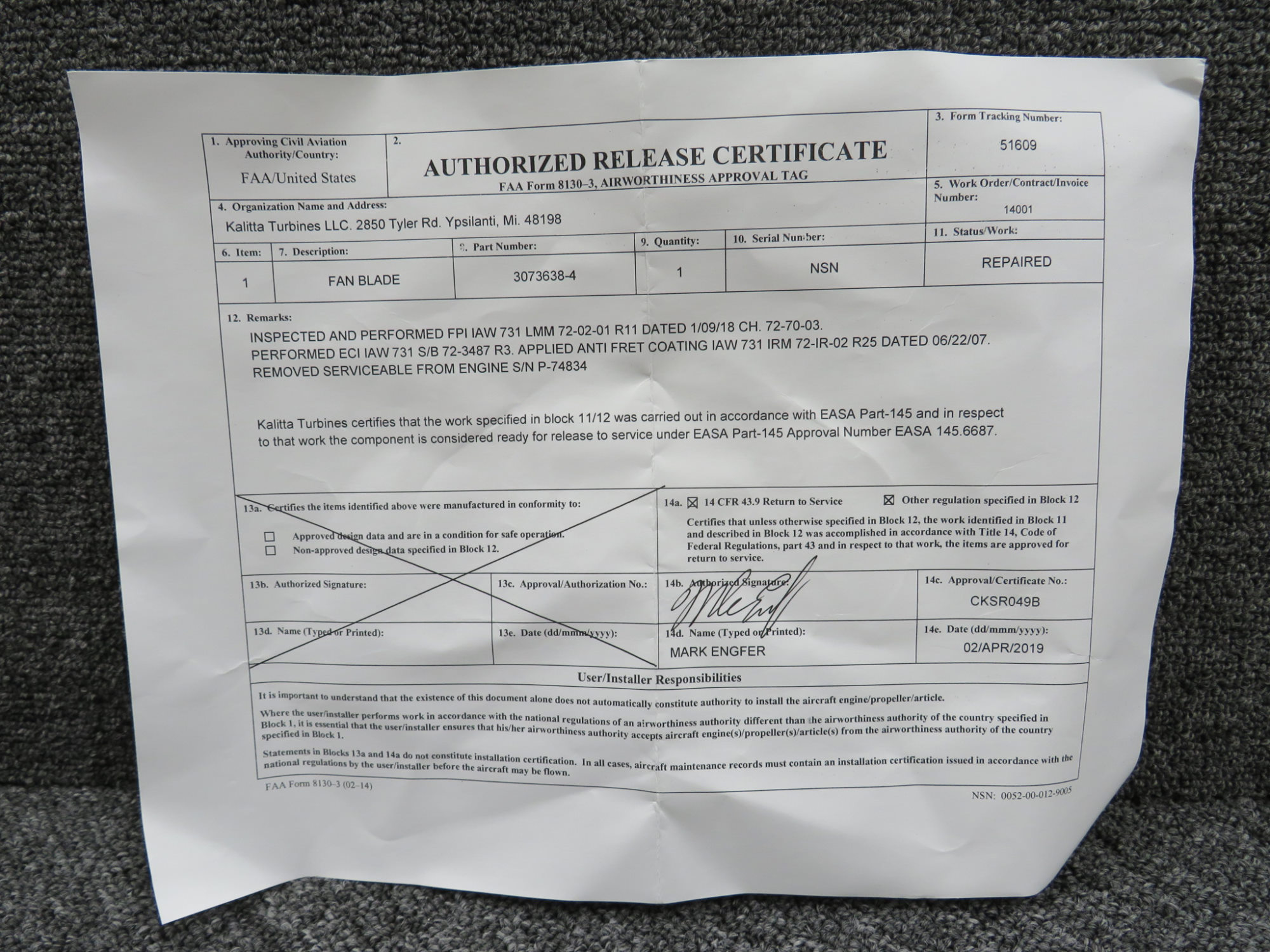 - Has 8130-3