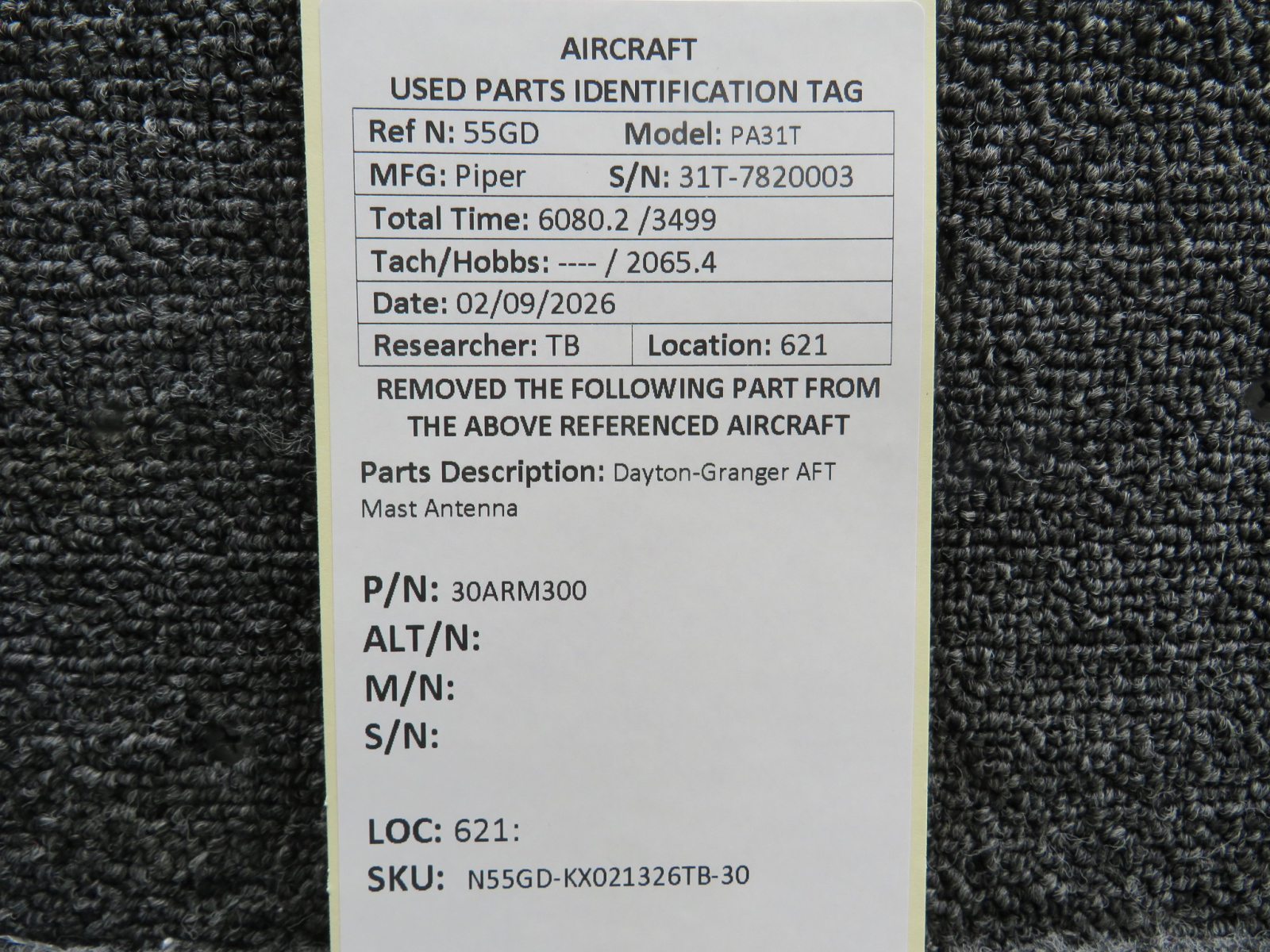 Unless specifically noted, most of our used airplane parts are sold in the condition they were removed, which means you should expect the usual signs of wear and tear.