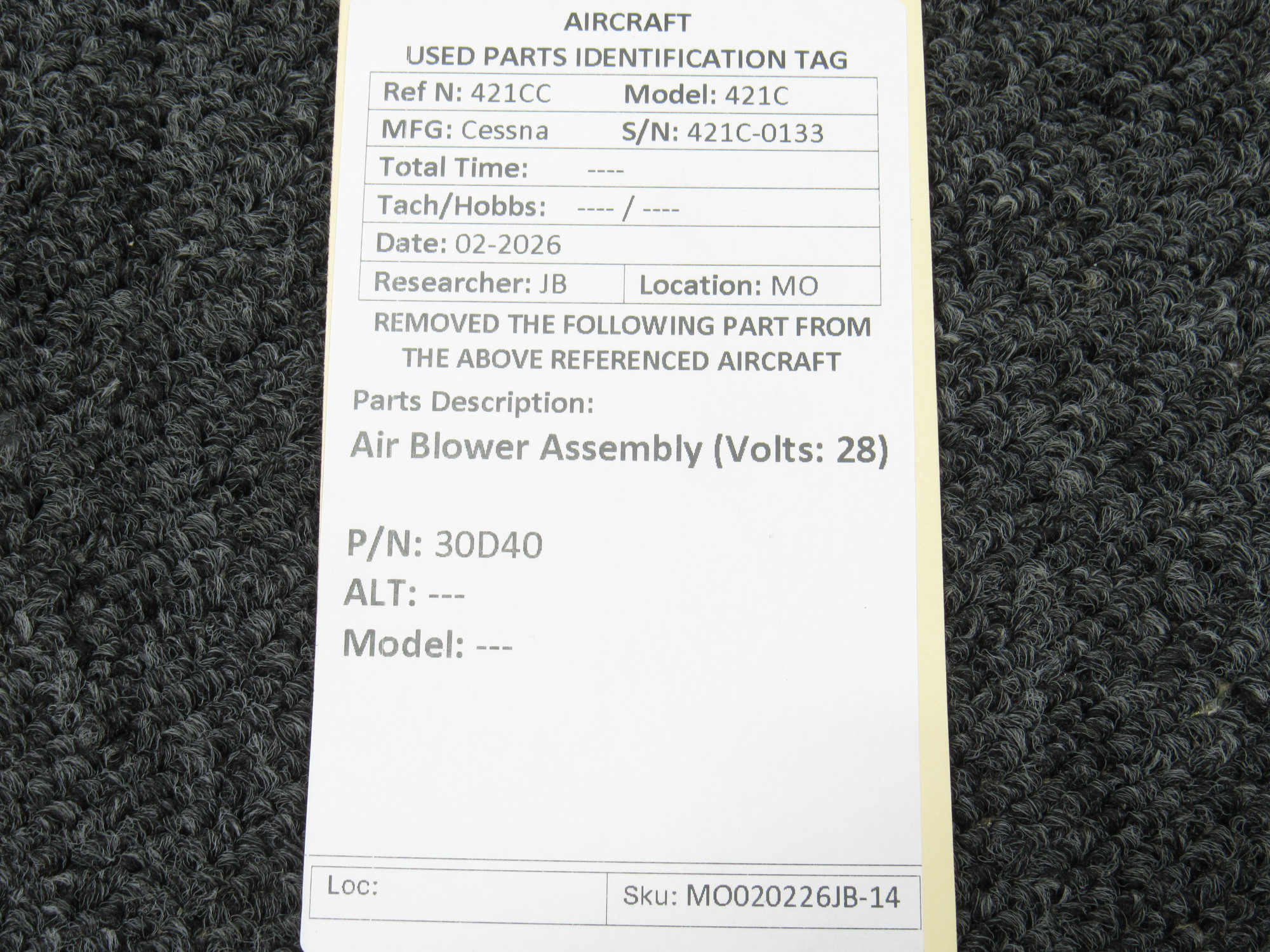 Every part is carefully inspected throughout our process and several times before it goes online. Most items are sold as-removed, just as they came off the aircraft. These parts are not functionally tested. What we do provide is clear photos, full traceability when available, pricing that reflects the as-removed condition, and a no-nonsense 90-day return window.