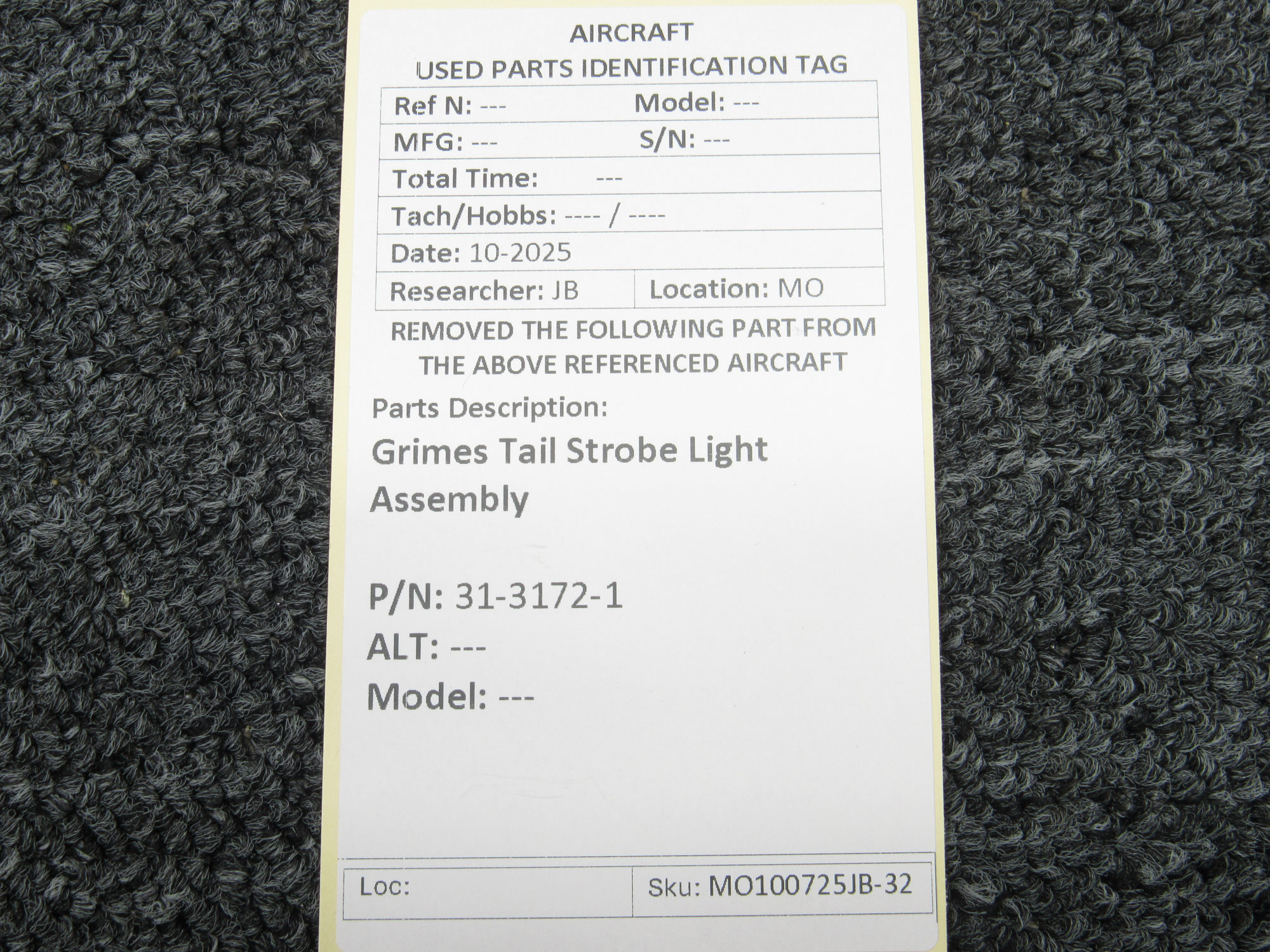 Unless specifically noted, most of our used airplane parts are sold in the condition they were removed, which means you should expect the usual signs of wear and tear.