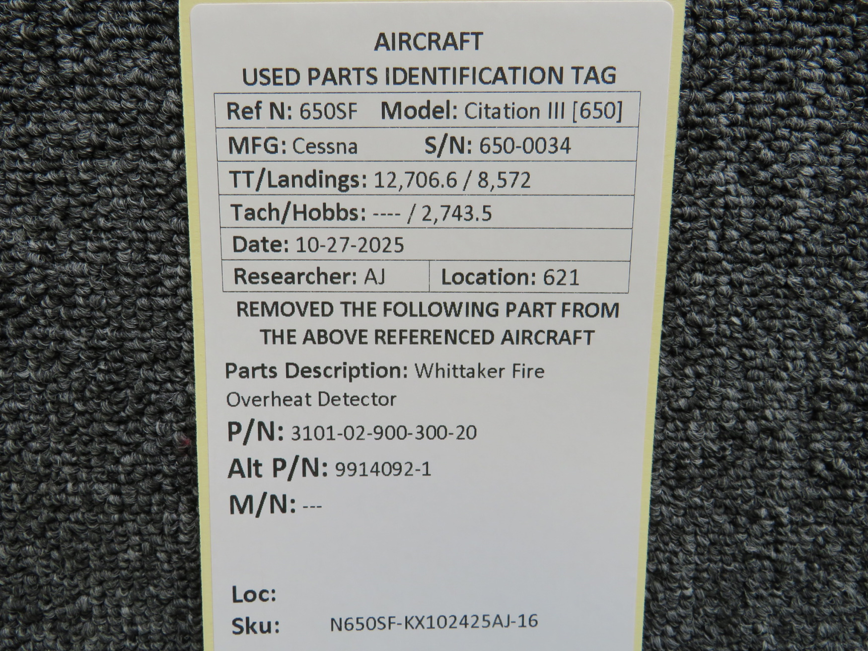 Unless specifically noted, most of our used airplane parts are sold in the condition they were removed, which means you should expect the usual signs of wear and tear.