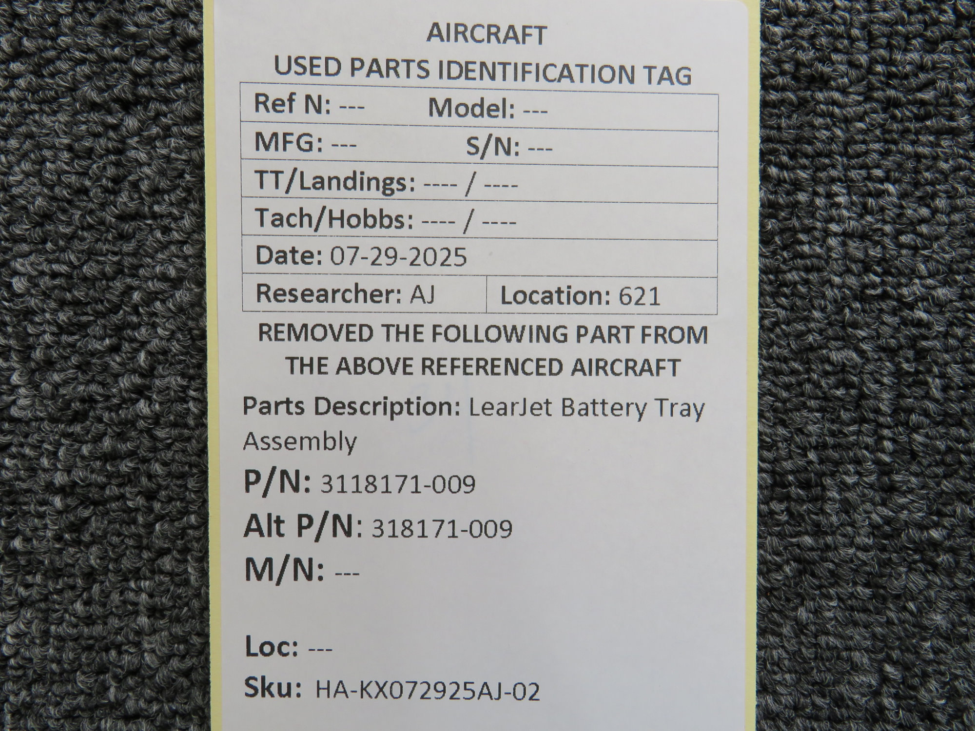 Unless specifically noted, most of our used airplane parts are sold in the condition they were removed, which means you should expect the usual signs of wear and tear.