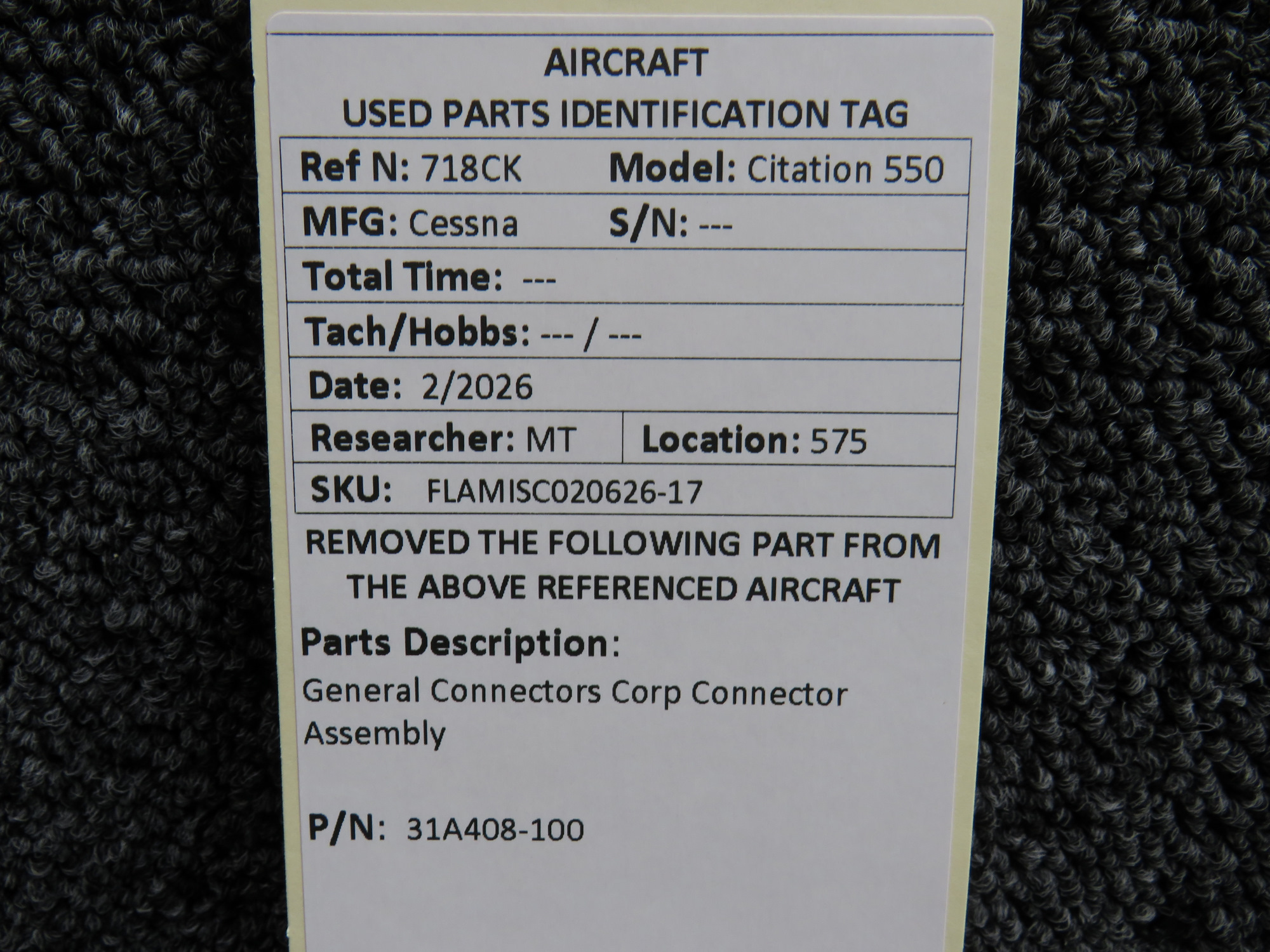 Unless specifically noted, most of our used airplane parts are sold in the condition they were removed, which means you should expect the usual signs of wear and tear.