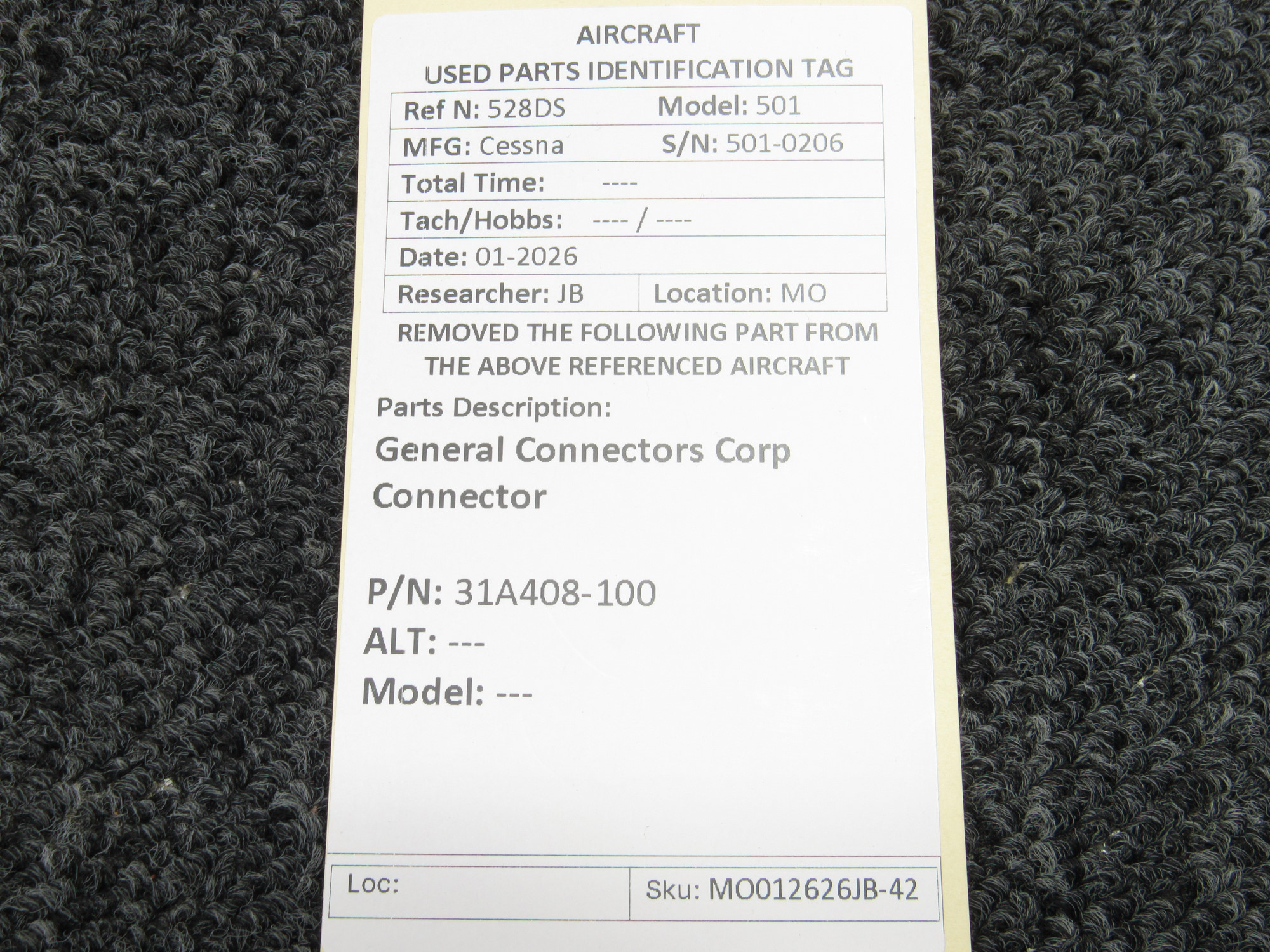 Unless specifically noted, most of our used airplane parts are sold in the condition they were removed, which means you should expect the usual signs of wear and tear.