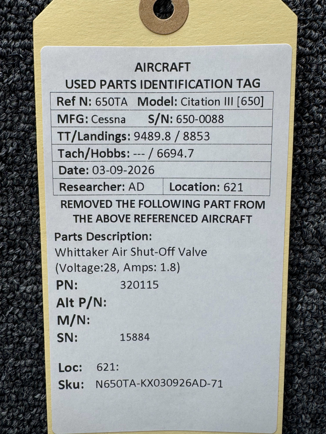 Every part is carefully inspected throughout our process and several times before it goes online. Most items are sold as-removed, just as they came off the aircraft. These parts are not functionally tested. What we do provide is clear photos, full traceability when available, pricing that reflects the as-removed condition, and a no-nonsense 90-day return window.