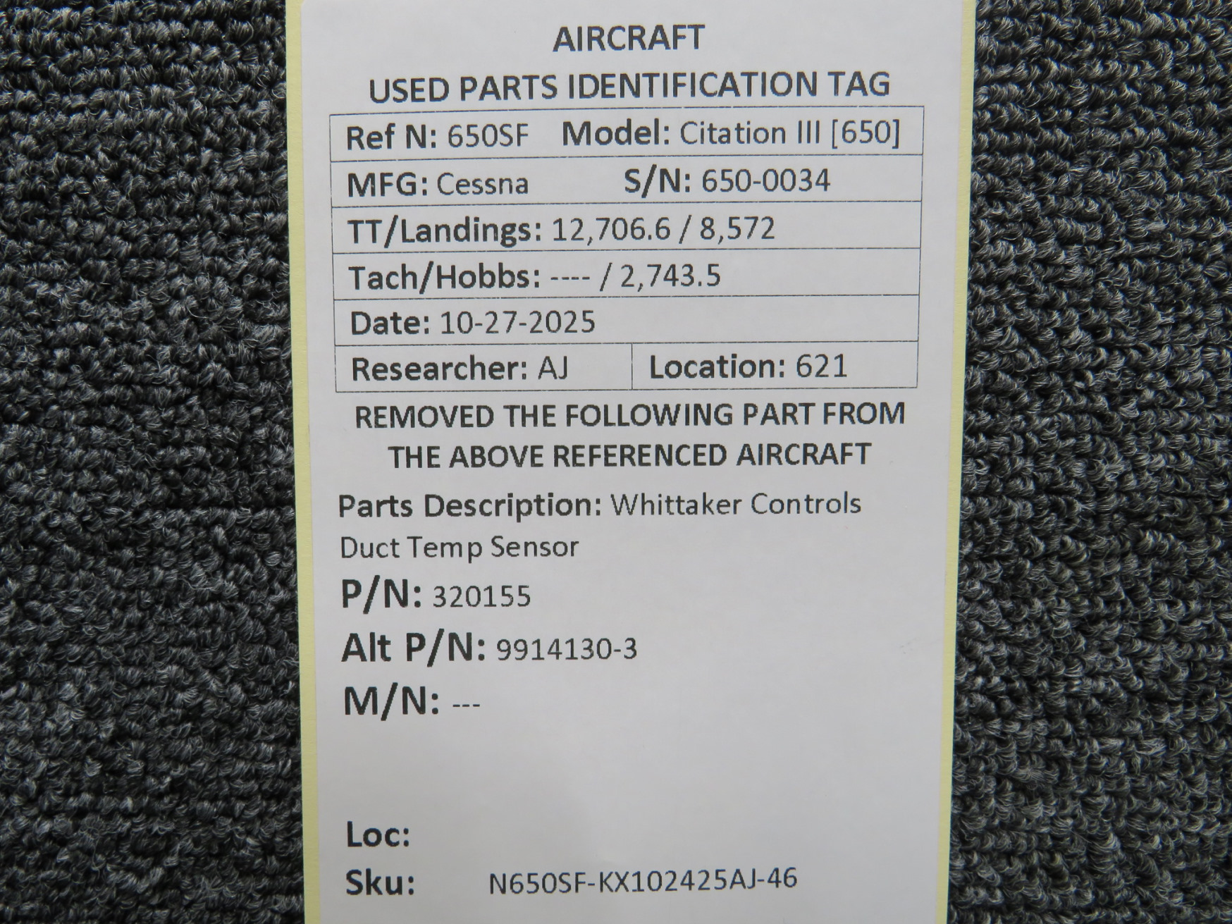 Unless specifically noted, most of our used airplane parts are sold in the condition they were removed, which means you should expect the usual signs of wear and tear.