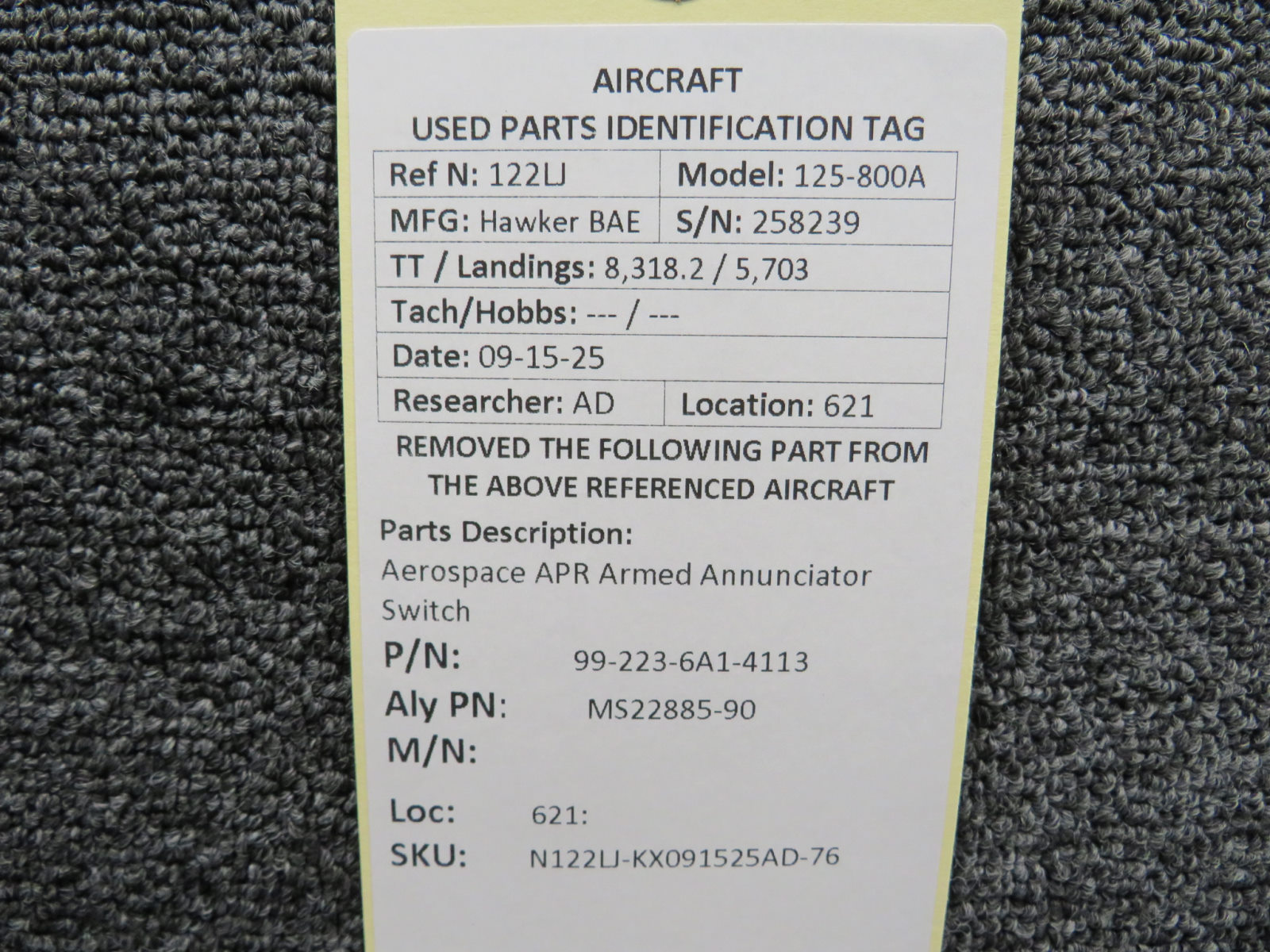 Every part is carefully inspected throughout our process and several times before it goes online. Most items are sold as-removed, just as they came off the aircraft. These parts are not functionally tested. What we do provide is clear photos, full traceability when available, pricing that reflects the as-removed condition, and a no-nonsense 90-day return window.