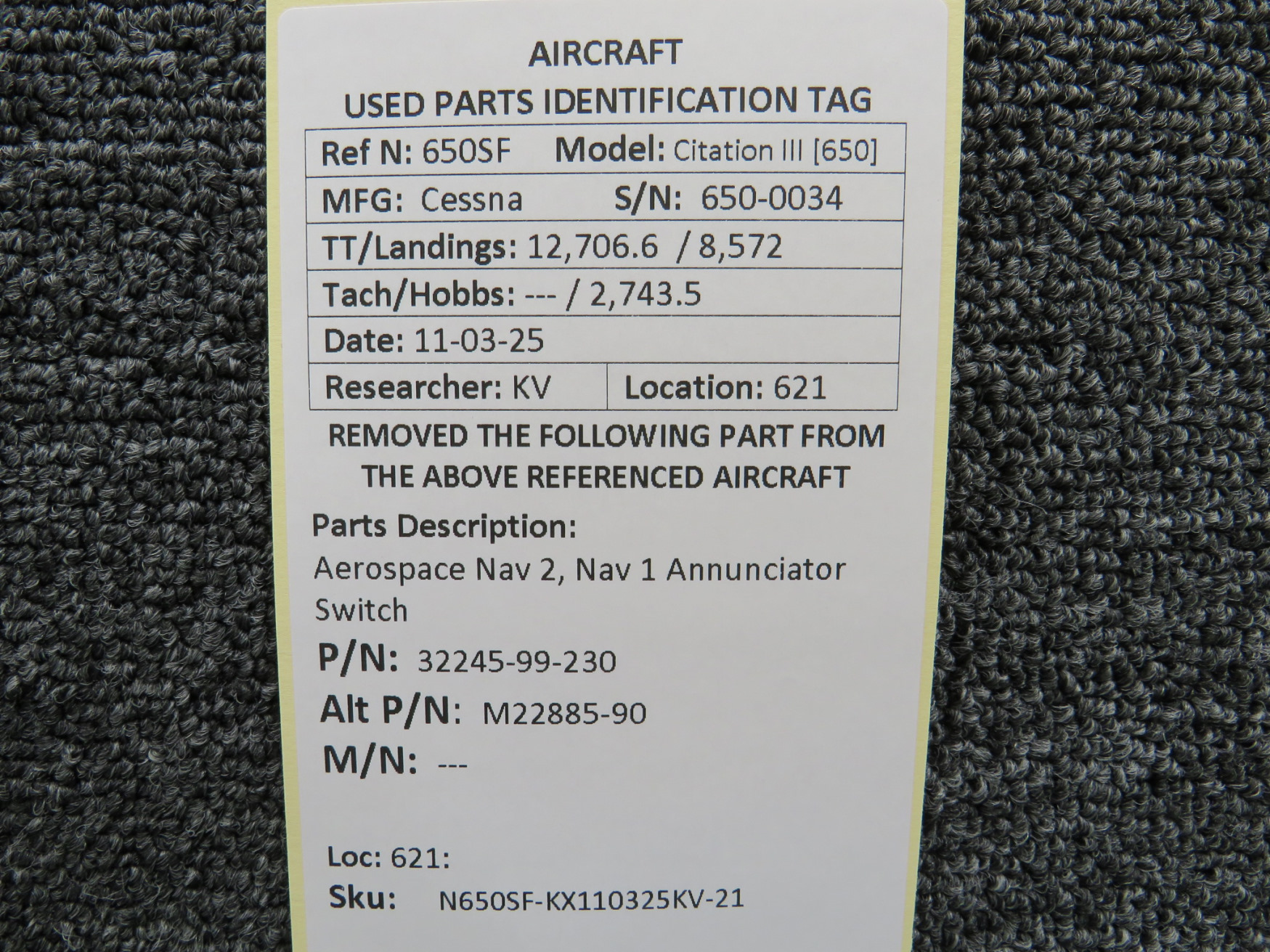 Unless specifically noted, most of our used airplane parts are sold in the condition they were removed, which means you should expect the usual signs of wear and tear.