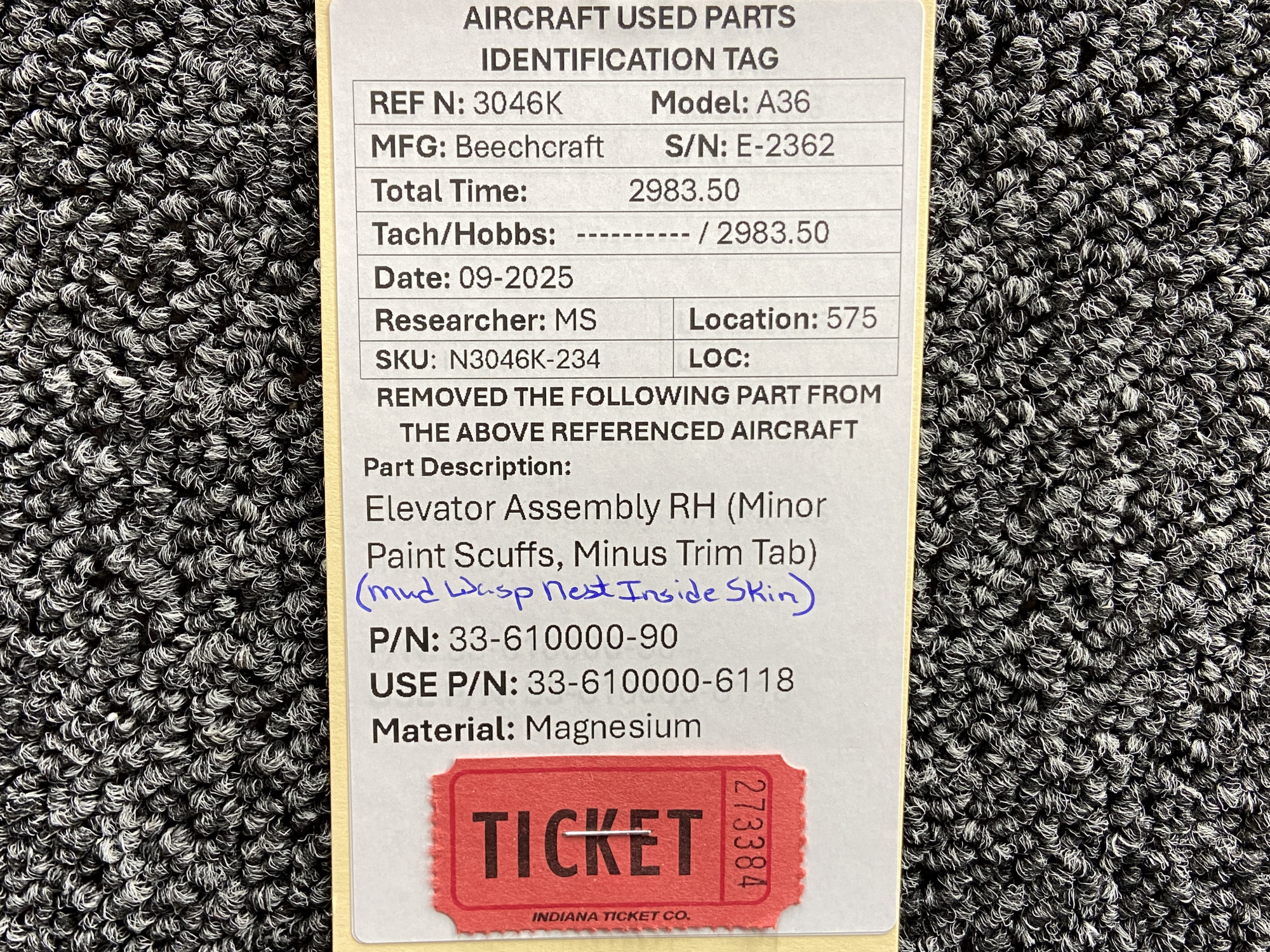 - N3046K-234KW: does NOT have trim tab and static wick mounts are damaged